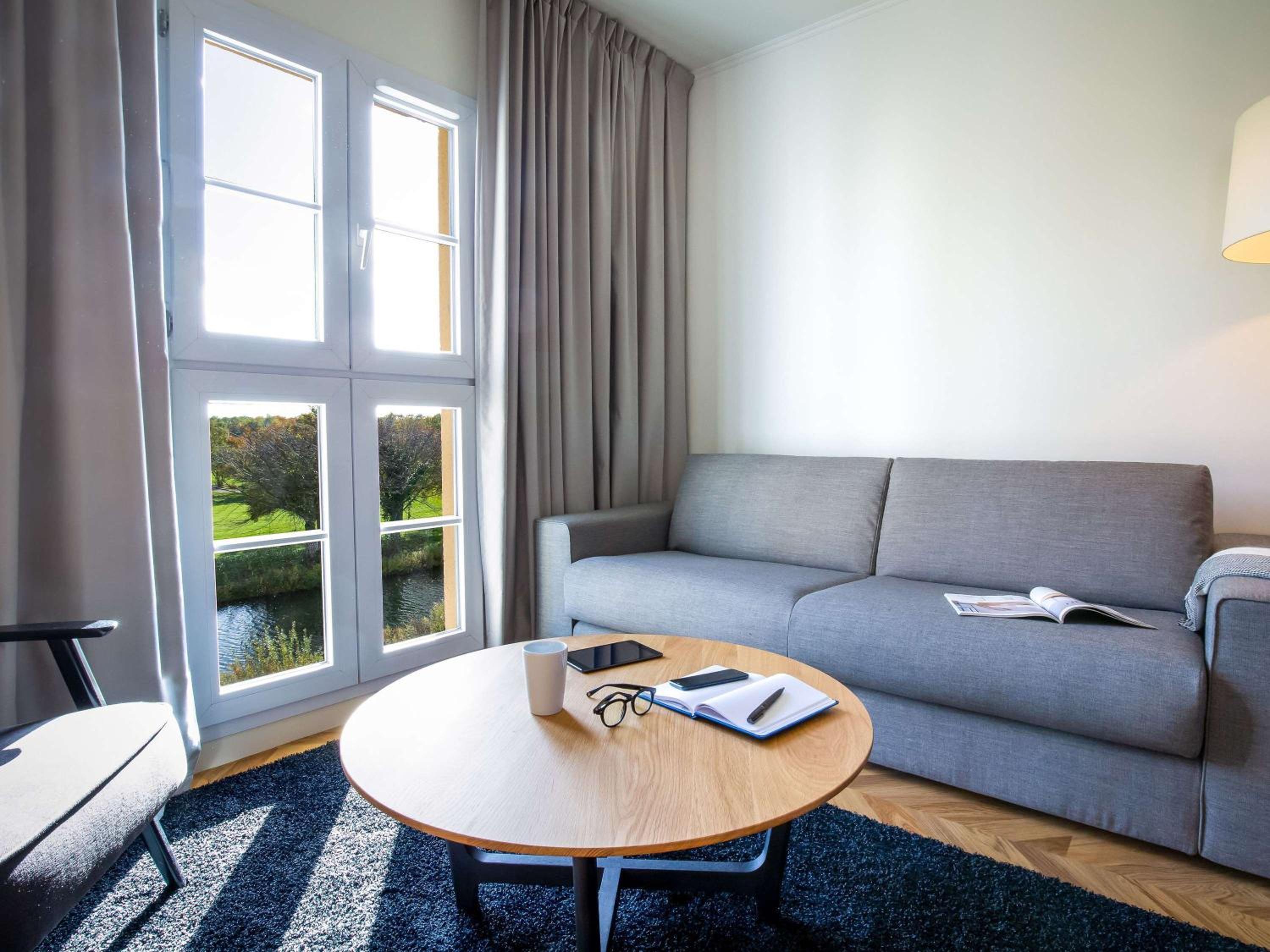 Leisure and Activities: Stay active at the fitness centre or play a round at the 18-hole golf course. Plus, guests receive a 15% discount on golfing.