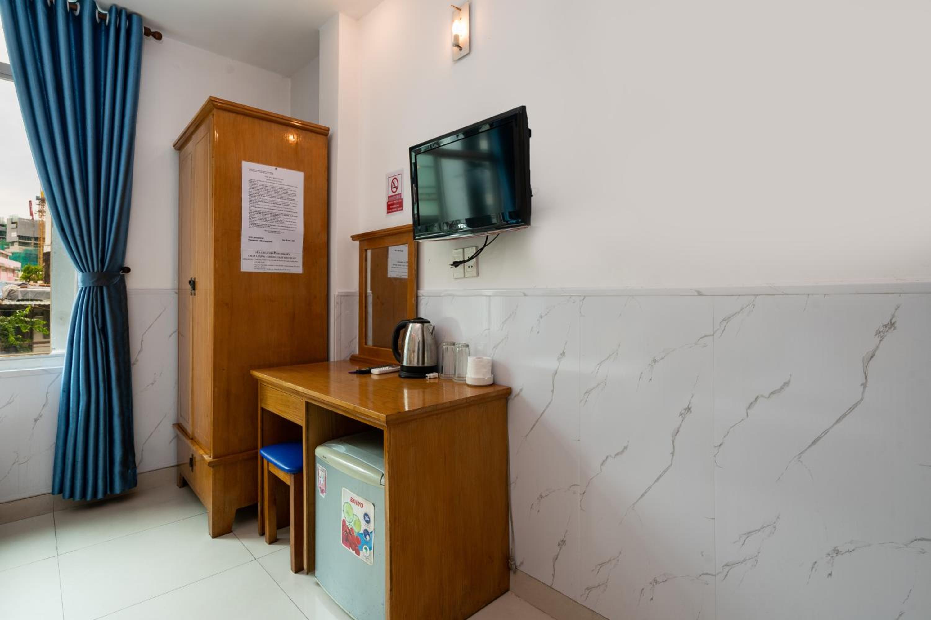 Phòng cũ, thiếu vật dụng cần thiết tối thiểu cho khách lưu trú.