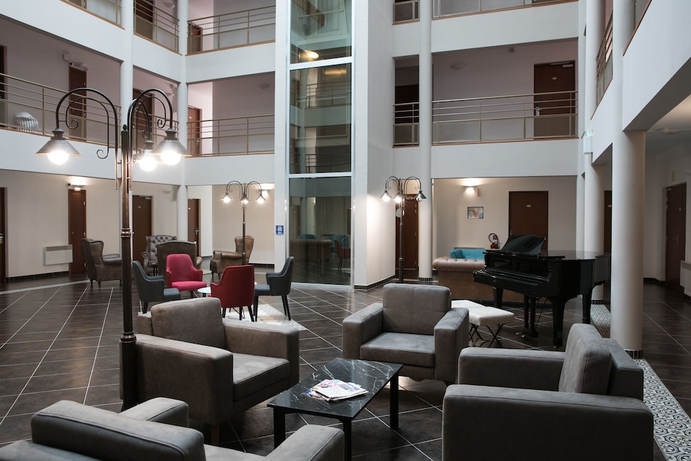 Ascenseur. Parking sécurisé. Chambre insonorisé. Bonne literie. Service irréprochable, avec le sourire. Dîner possible de qualité avec prix très correct. Bon petit dej sucré salé avec de vrais bons croissants ou pain au chocolat.