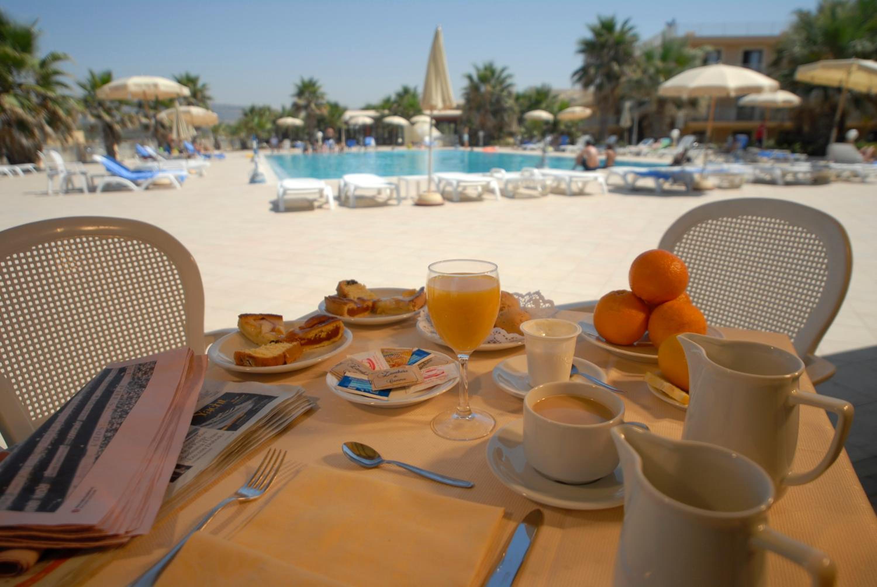 La struttura è molto bella. Arredamento un po' antiquato però le camere sono tenute abbastanza bene. La parte più bella è sicuramente l'area piscina e colazione