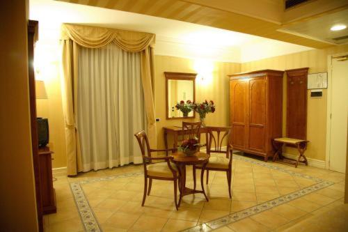 Struttura importante con ampi saloni di ricevimento, camere un po datate ma pulite. Ottimo parcheggio spazioso. Comodo ristorante e cucina ottima.