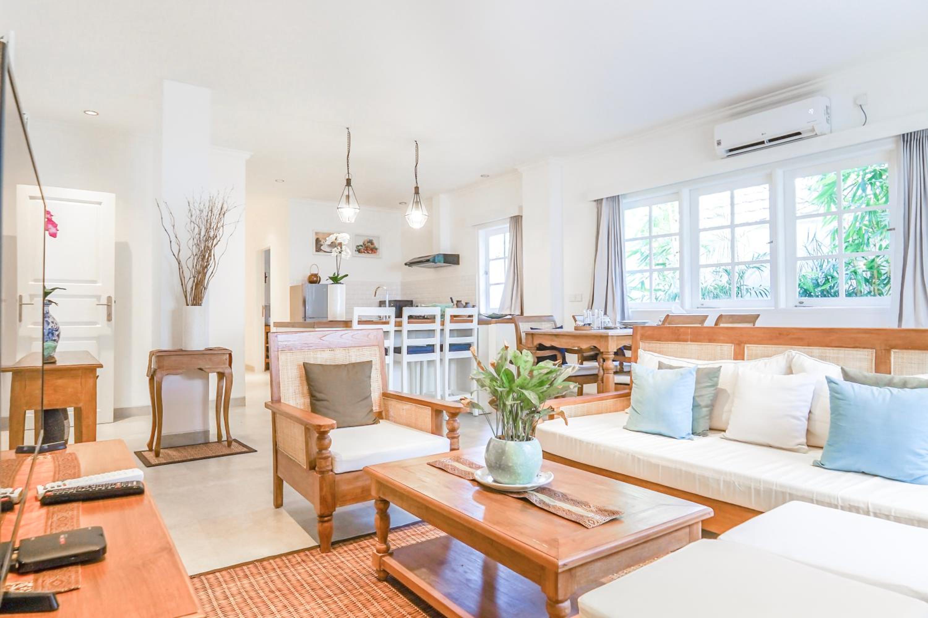Convenient Location and Excellent Service: Situated near Petitenget Temple and with easy access to Ngurah Rai International Airport, Umalas Suites provides a convenient base for exploring Seminyak. Enjoy top-notch service including a 24-hour front desk, airport transfers, and complimentary WiFi throughout the property.