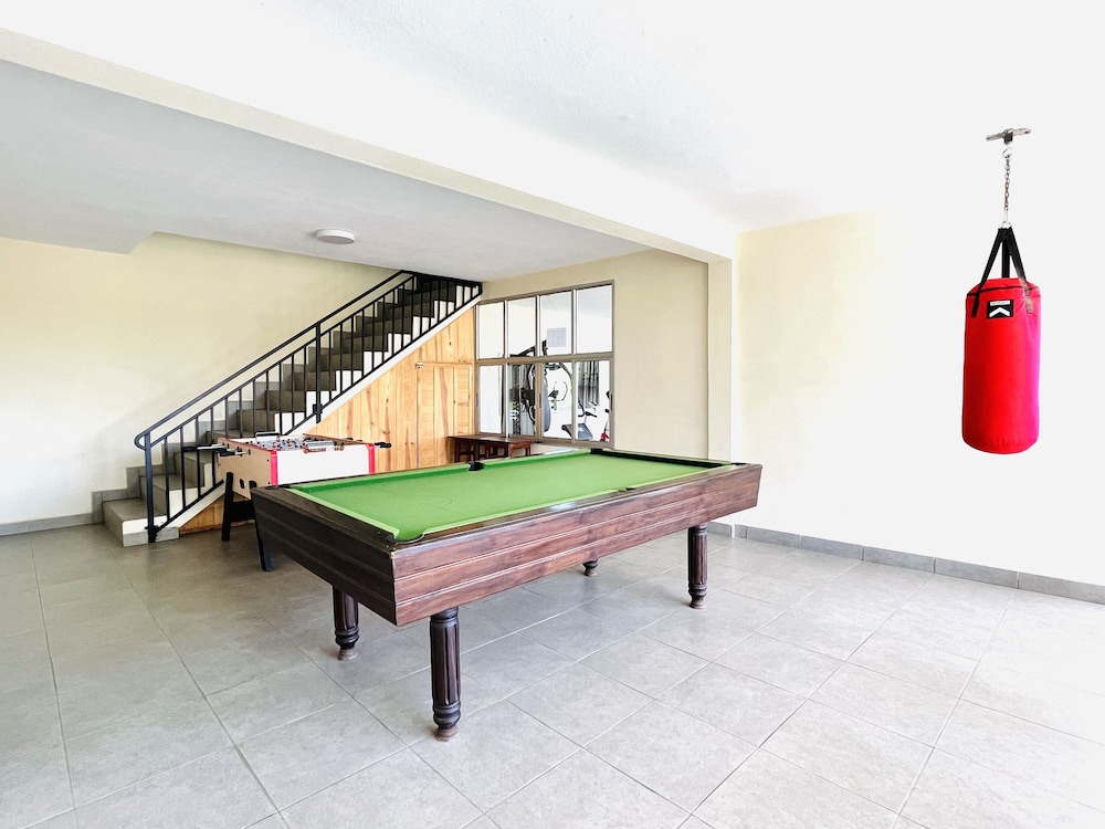 Il y a du tout. Bar, billard, piscine, appareil pour le sport,... Vraiment le top.