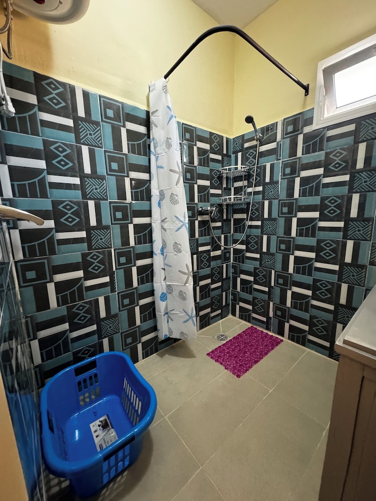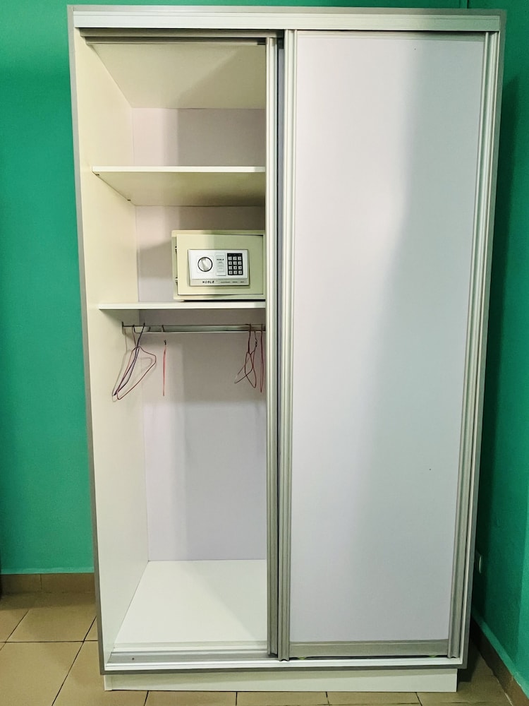 The photos on the hotels.com site were misleading. It had a studio room that showed kitchen items on the counter and a different bathroom from what I got. Not only was the room guest-unfriendly: no soap, no utensils or dishes, no drinking water--it was a bare bones room with an uncomfortable bed with no proper bed pillows--huge, decorative uncomfortable pillows instead. I had bug bites all over my body in the morning. At least the fan worked and the Wi-Fi was dependable.