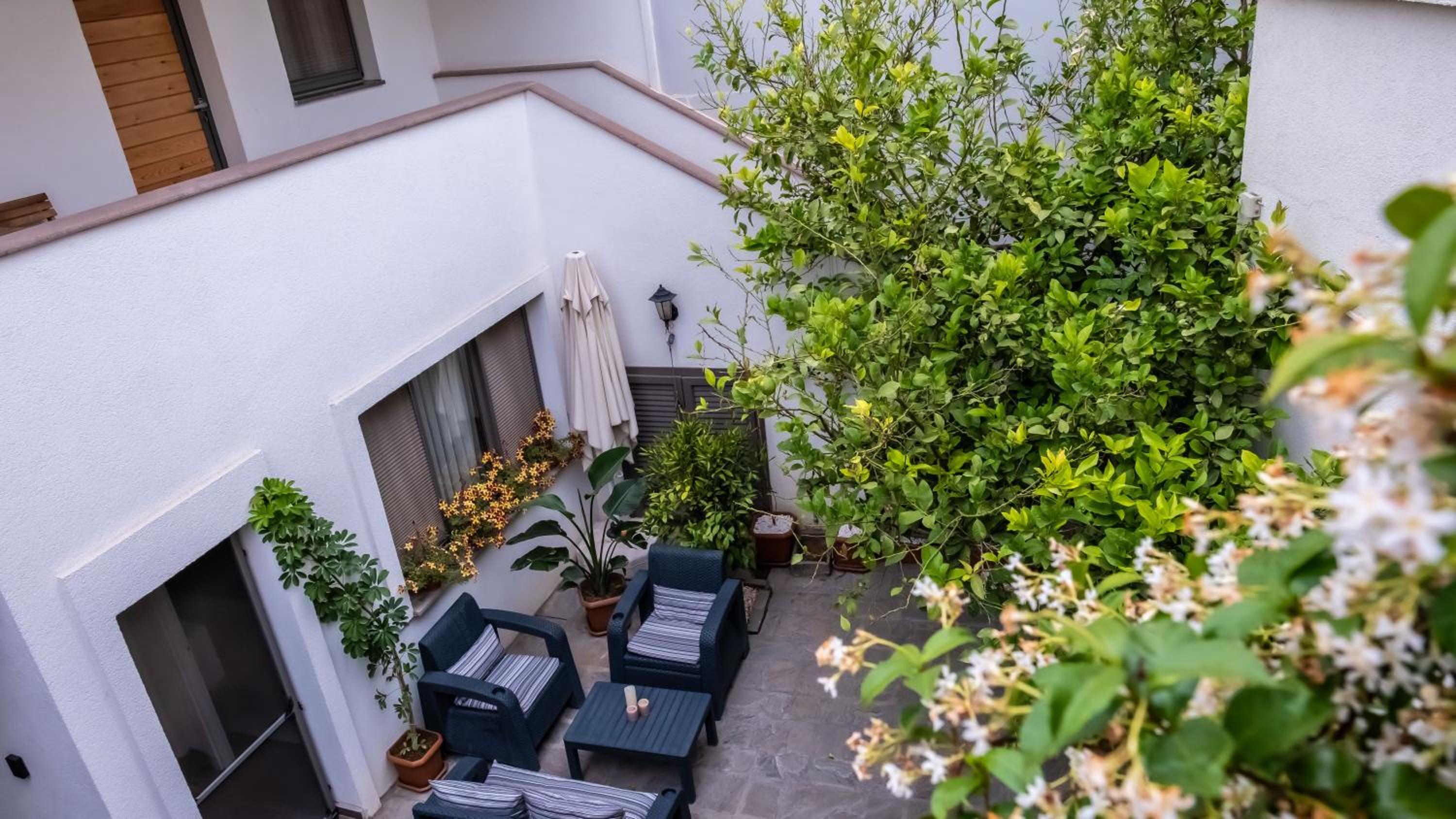 Comfortable Rooms with Balconies and Terraces: Indulge in comfort with rooms featuring balconies offering garden views and selected rooms with terraces. Each unit is equipped with a private bathroom, flat-screen TV, and air conditioning.