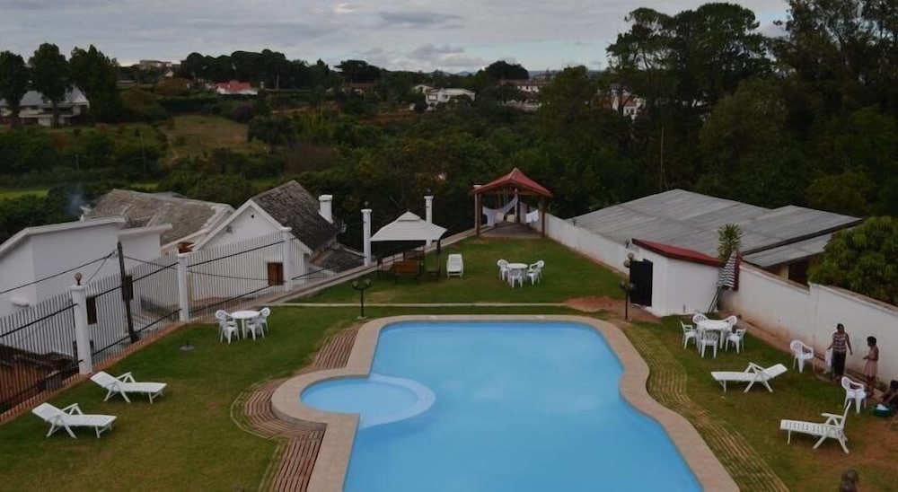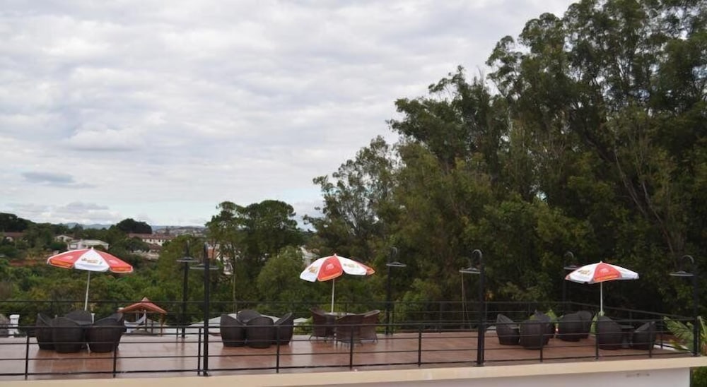 Enjoy the outdoor pool, terrace, and garden at Red Island Inn for the ultimate relaxation experience with a stunning view.