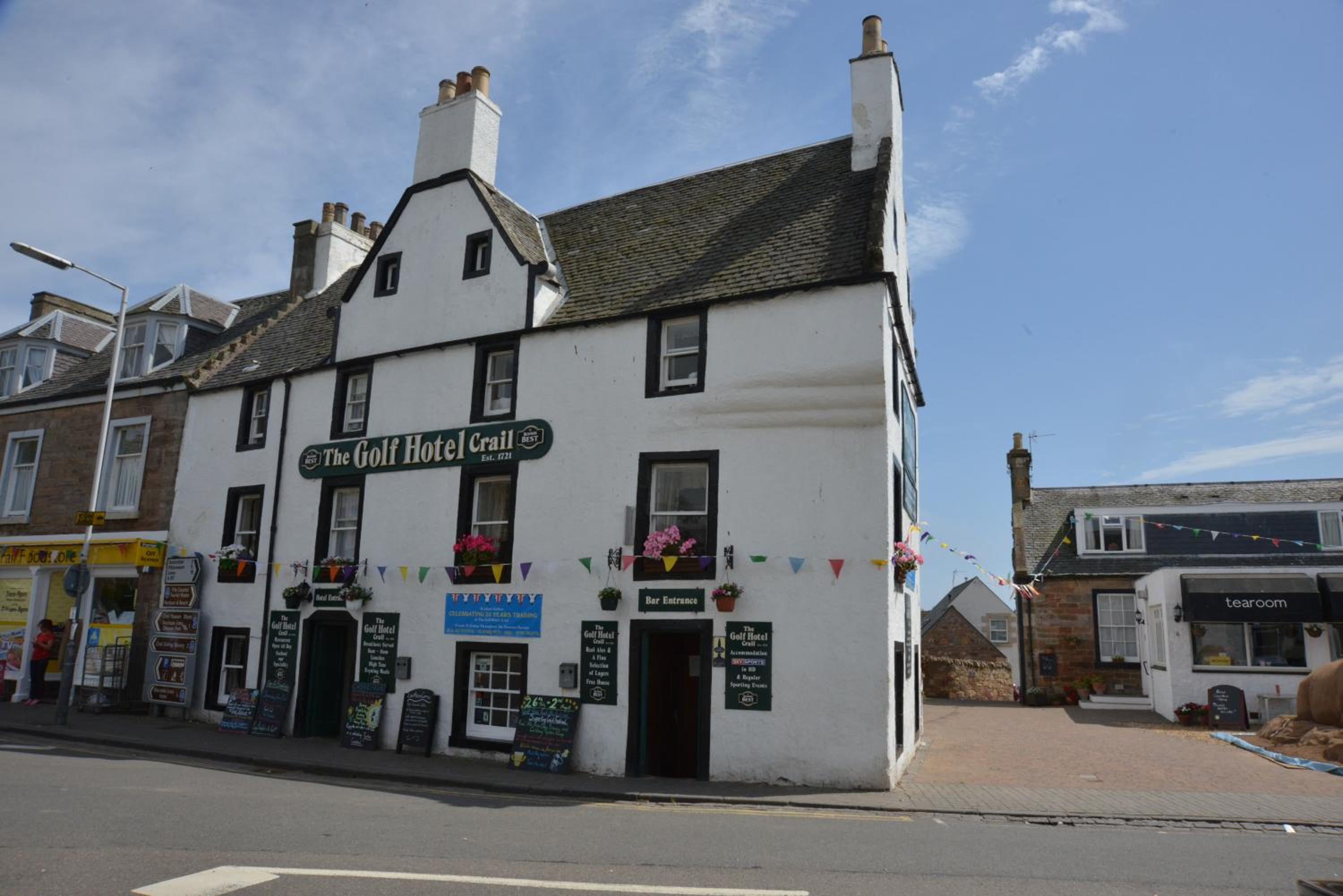 Situated in Crail, a mere 12 km from St Andrews Bay, The Golf Hotel offers a serene escape with a garden, private parking, shared lounge, and terrace. The hotel boasts a bar and is conveniently located within 16 km of St Andrews University.