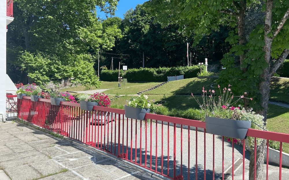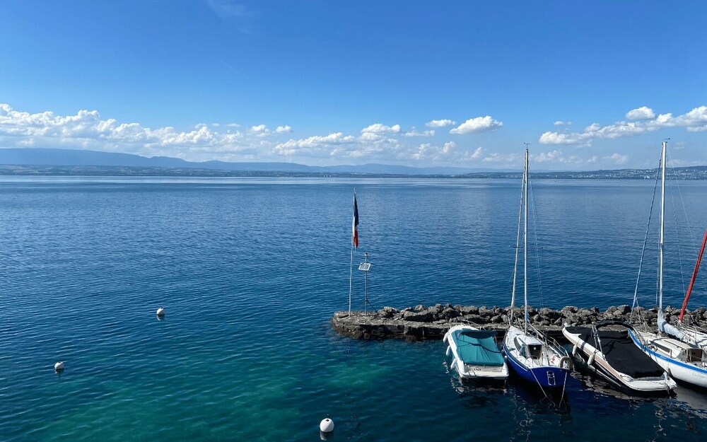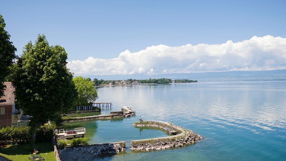 Cet hotel est tres bien situe au bord du lac leman.l accueil est bon et rapide.la grande chambre vue lac est correcte meme si quelques ameliorations sont a apporter comme les rideaux qui ne sont pas occultant.Il y a une baignoire douche et wc separes.le petit dejeuner est a 16 euros et est tres correct et suffisant et il y a une piscine et un grand parking.l hotel est tres propre et son personnel agreable.