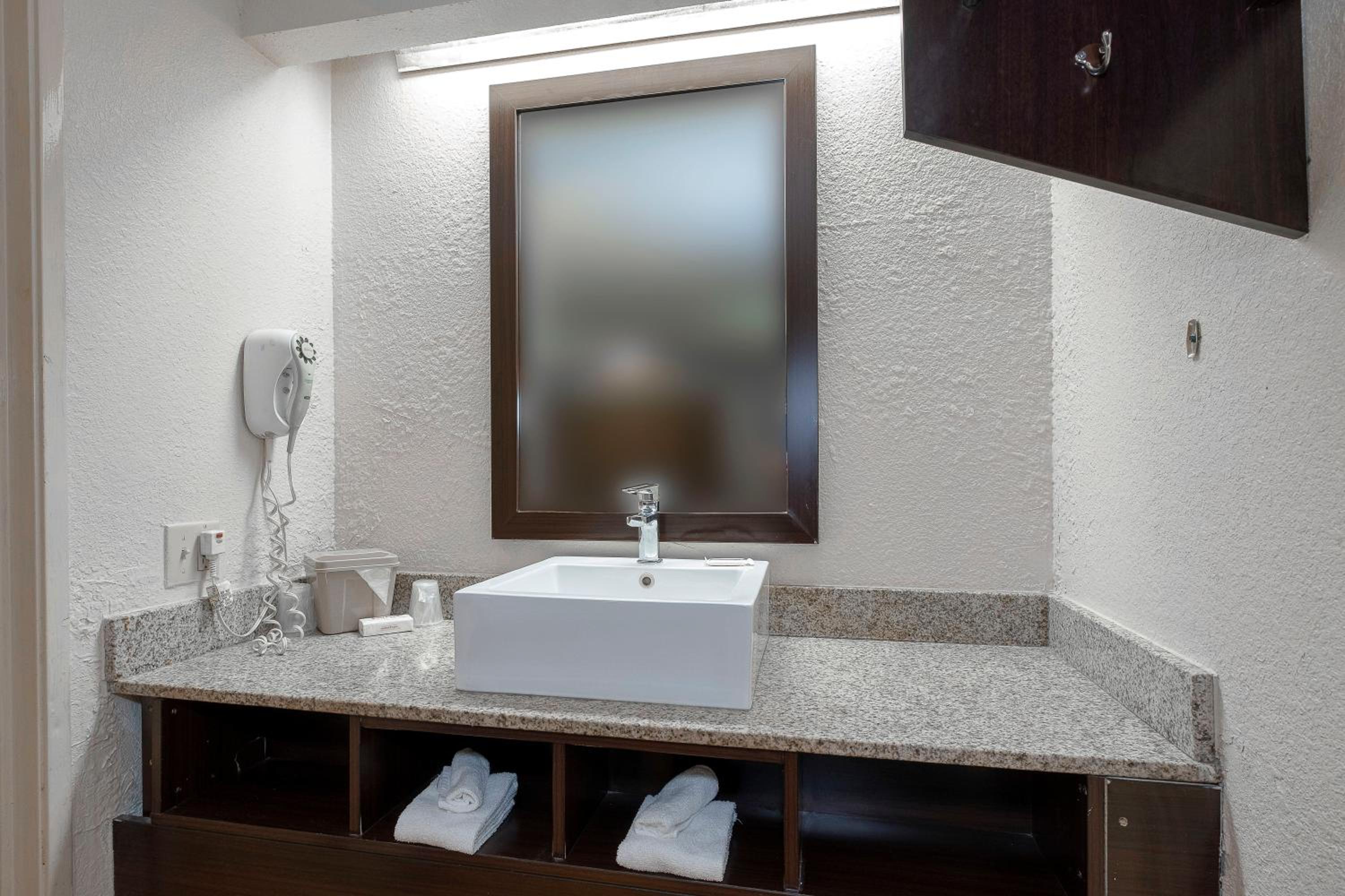 Cons: I needed a downstairs room because I am handicapped but we were put on the second floor. The outdoor stairs leading to the second floor had broken steps, and the handrails were unsteady. I do understand this is an older hotel. I was able to get up the stairs with help from my family. In our room, there was a hole in the wall by the sink. When we checked out, I tried calling the front desk several times, but no one answered. We just left the key by the bed.