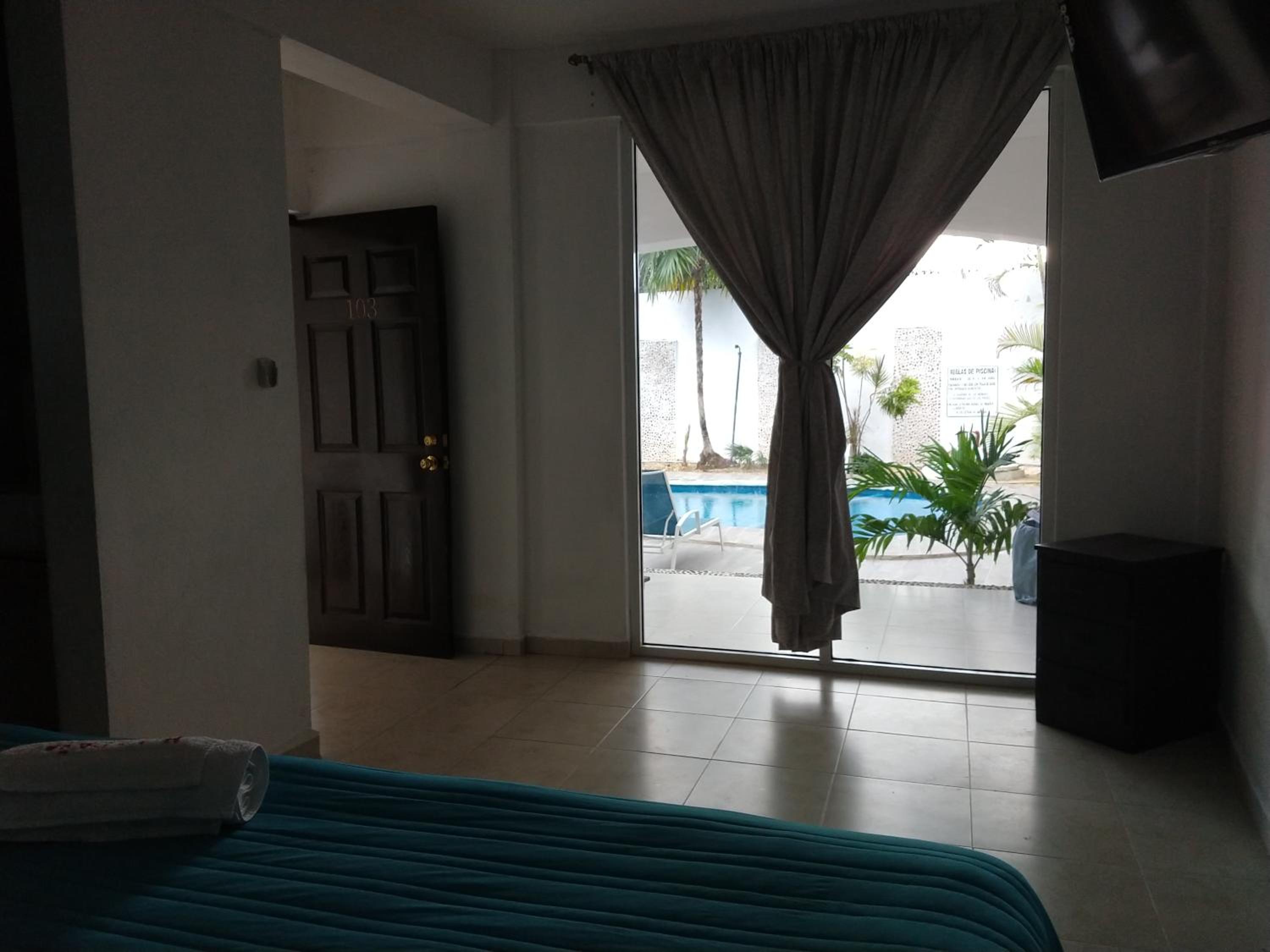 Bathroom was not clean. Shower curtain old and moldy. Blanket with stains. Pool is lacking maintenance. Tiles coming off cause cuts and abrasions to my wife's feet.