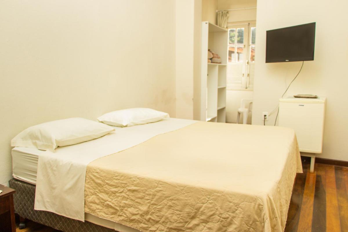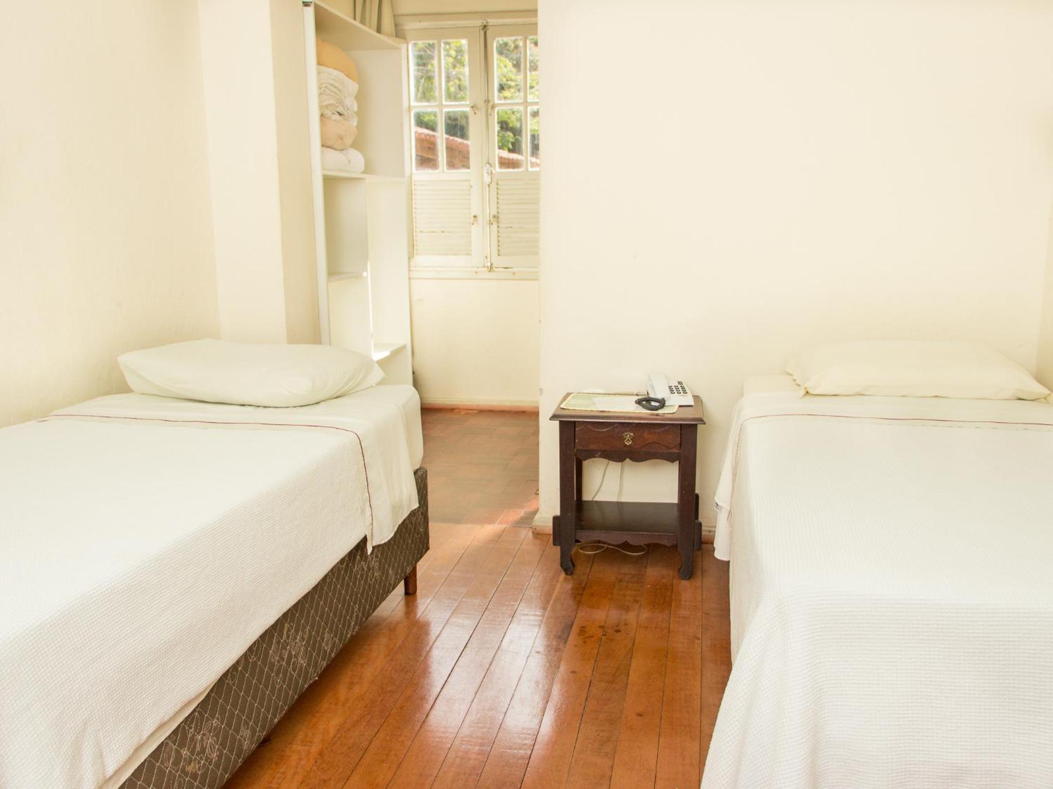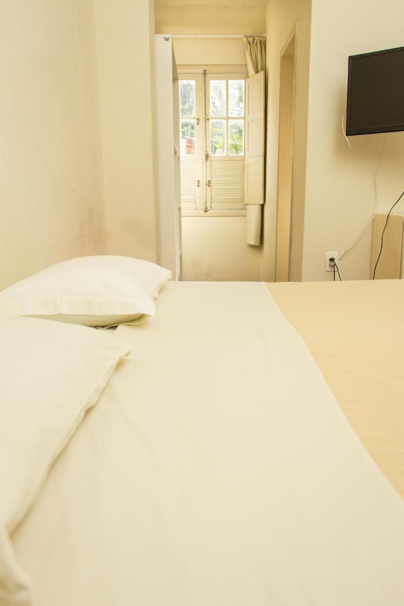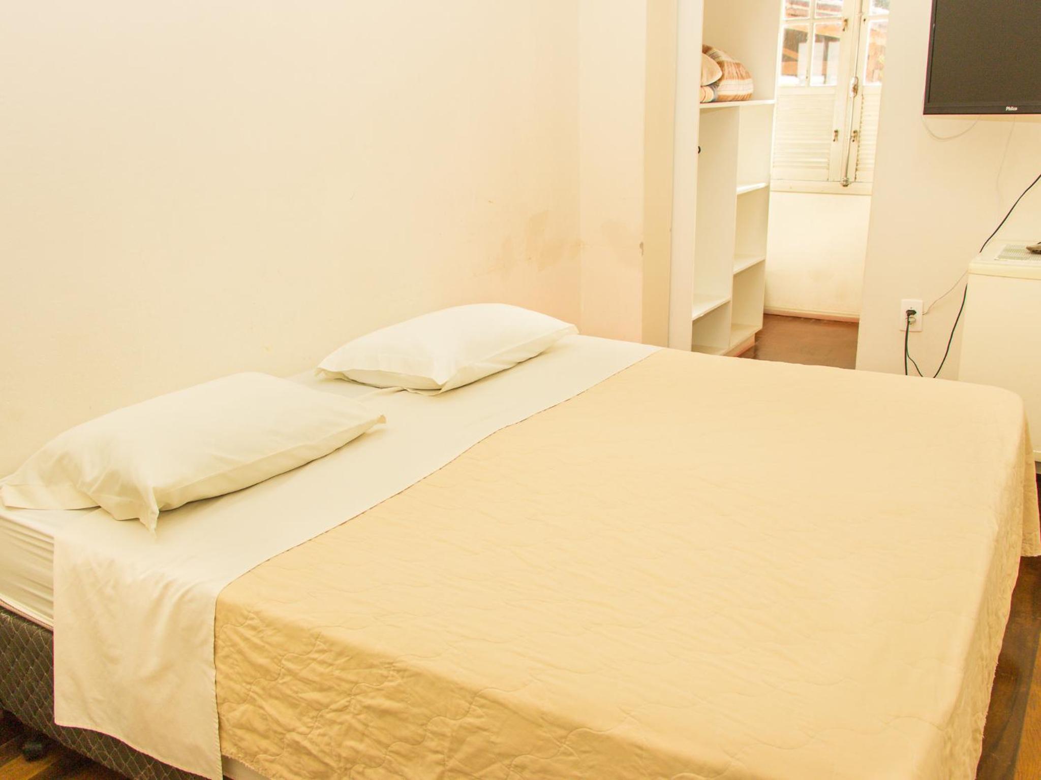 As acomodações são bem simples. Peguei o quarto para casal com banheiro, e a cama era 2 camas de solteiro fixadas uma na outra, porém o colchão eram 2 de solteiro, o que dava um certo desconforto caso fosse para o meio da cama. Pelo menos tinha ar-condicionado, e um frigobar no quarto. Mas o espelho do banheiro (com moldura de madeira) estava derramando cupim na pia. E o chuveiro era bem pequeno e mesmo com boa vazão de água saia um jato muito fino.