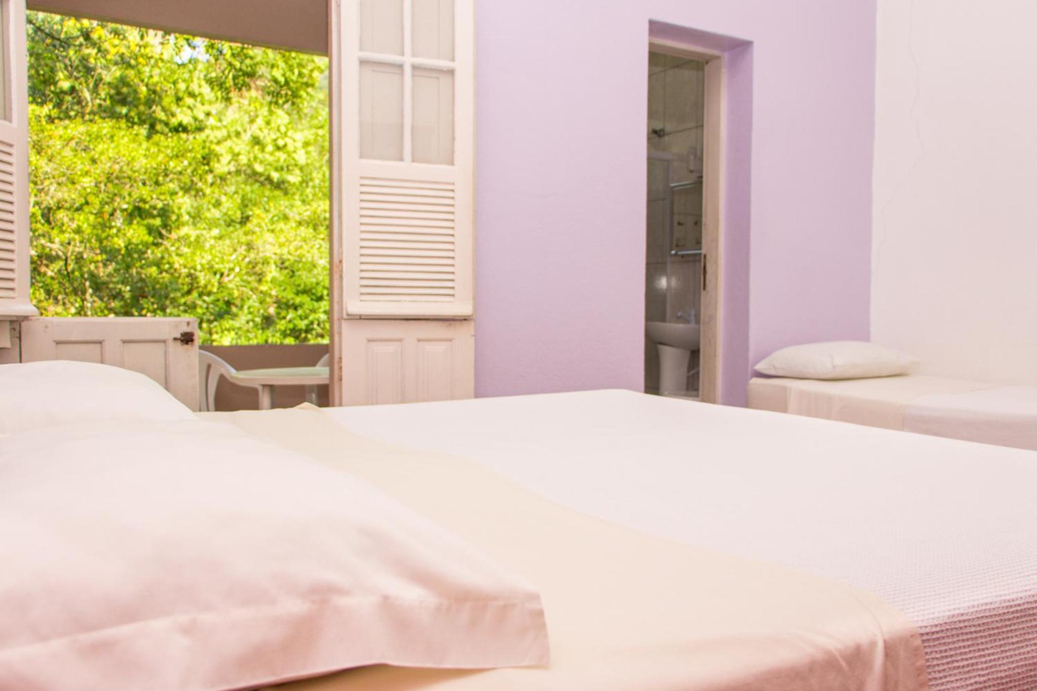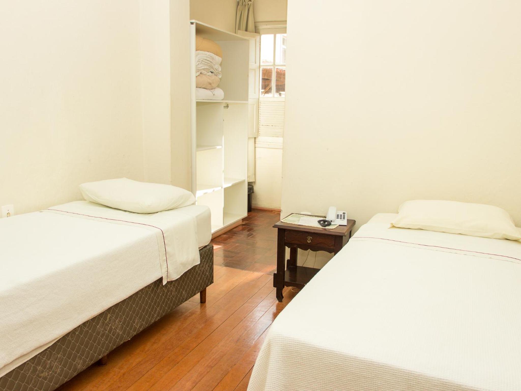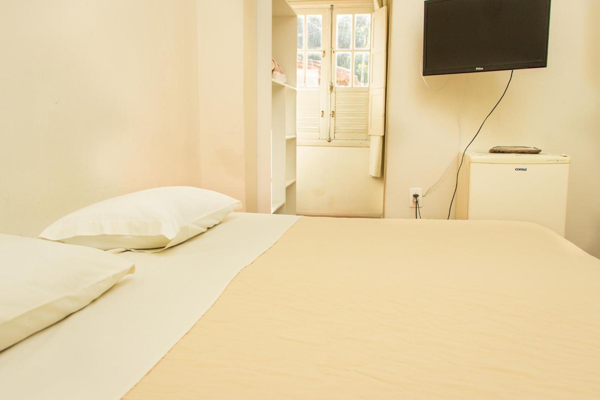 As acomodações são bem simples. Peguei o quarto para casal com banheiro, e a cama era 2 camas de solteiro fixadas uma na outra, porém o colchão eram 2 de solteiro, o que dava um certo desconforto caso fosse para o meio da cama. Pelo menos tinha ar-condicionado, e um frigobar no quarto. Mas o espelho do banheiro (com moldura de madeira) estava derramando cupim na pia. E o chuveiro era bem pequeno e mesmo com boa vazão de água saia um jato muito fino.