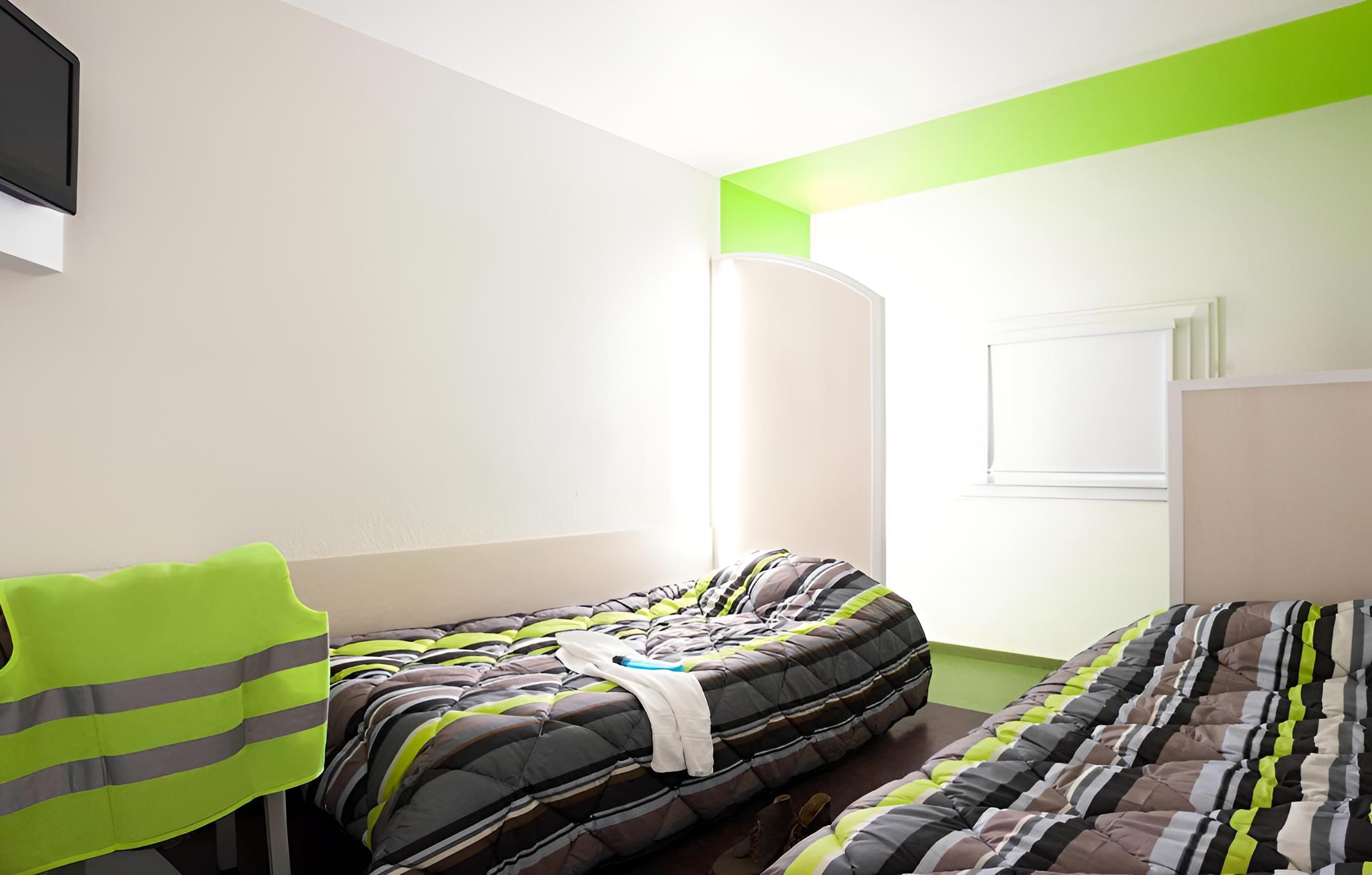Each room at HotelF1 Brive Ussac is equipped with a flat-screen TV for entertainment. The shared bathrooms, conveniently located in the corridor, feature a shower and toilet for guests' comfort and convenience.