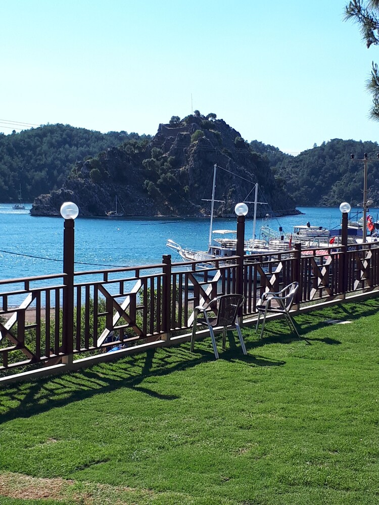 Fotoğraflarda direk denize 0 olarak görünüyor ancak otelle Kız kumu plajı arasından Orhaniye Selimiye anayolu geçiyor. Gene de Bölgedeki seçenekler arasında konumu en iyi olanı diyebilirim.