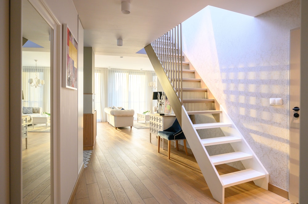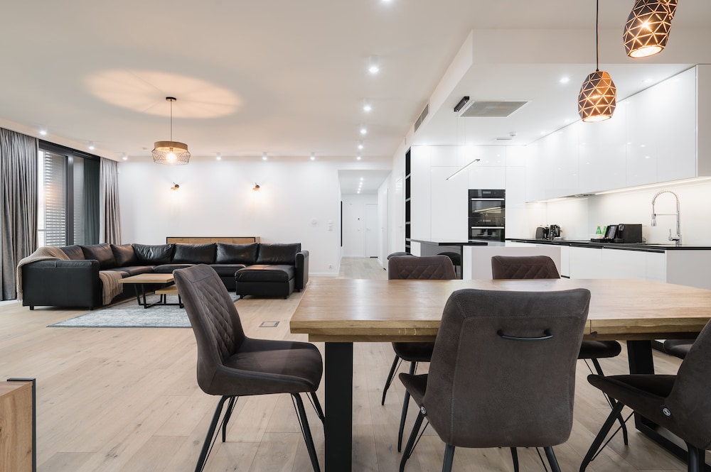 Beautiful location walkable everywhere. Loved Wroclaw even more than Krakow. Much smaller but still it had so much culture. The apartment had the most amazing million dollar view with the university on one side and marina on the other. Wish we planned to stay longer! We didn’t use the kitchen but it was sleek and had everything you would need. Two bedrooms downstairs and main on the level with the family room. Amazing balconies and a rooftop balcony with lounge seating. Couldn’t have picked a nicer place in all of Europe to stay. Just stunning. Don’t hesitate for a second in booking this place. I thought by looking at the map that it might be hard to walk into town but it’s literally 5 minutes over that bridge and a tram stops steps from the hotel to catch a ride to the main train station. I wish I was back there right now! Enjoy