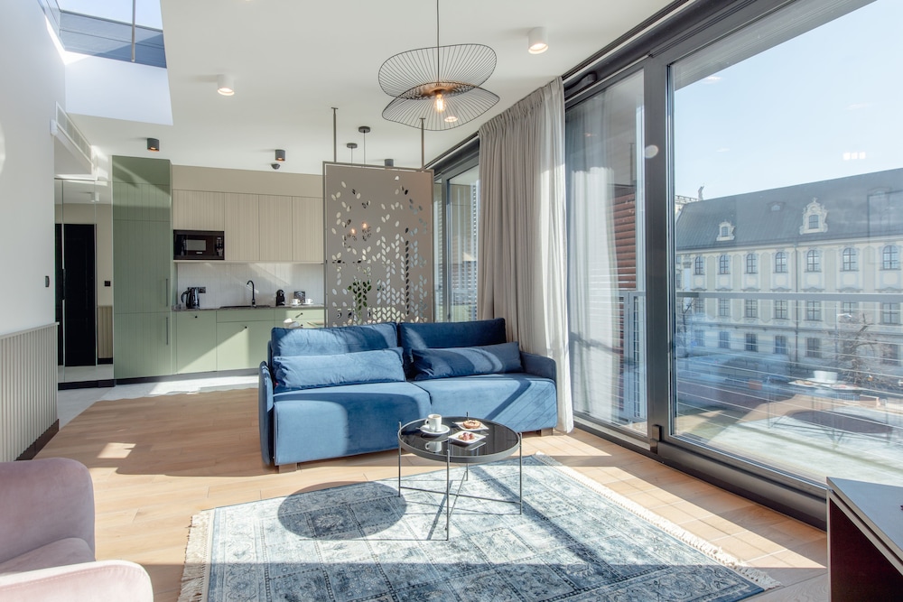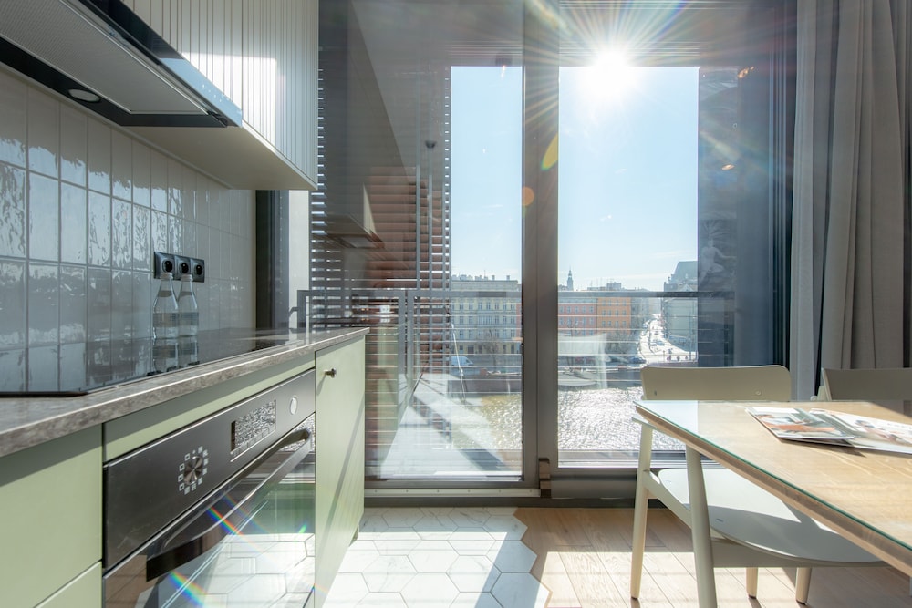 This is a very nice place in a great location. Quiet and yet a quick walk to the happenings in downtown. The rooms were extremely clean and well furnished. The kitchen is well stocked. Unfortunately I did not get the great river view I was hoping for when I booked and got just a back view which was sad but what really made this stay worth it was the staff. The staff are incredible and for that alone its worth staying here. A special shout out to Marharyta Sychova who was at the desk. I was completely stranded not being able to book tickets to Legnica and she went out of the way to help me get there. Such a kind soul. Would highly recommend this place.