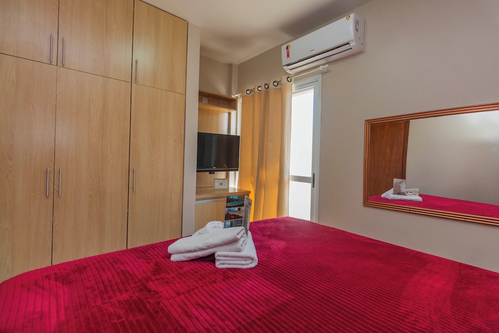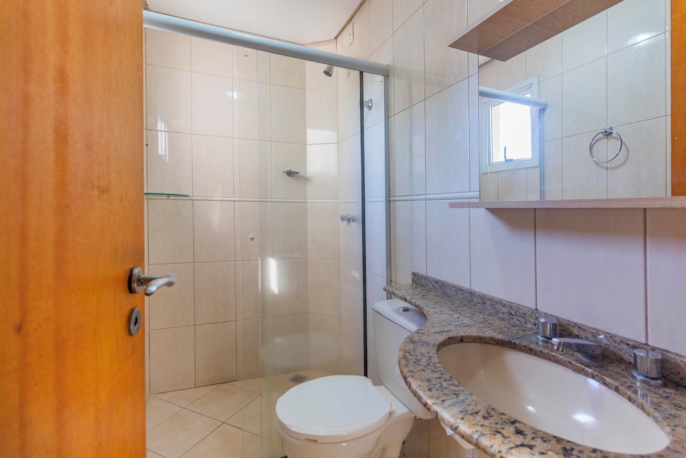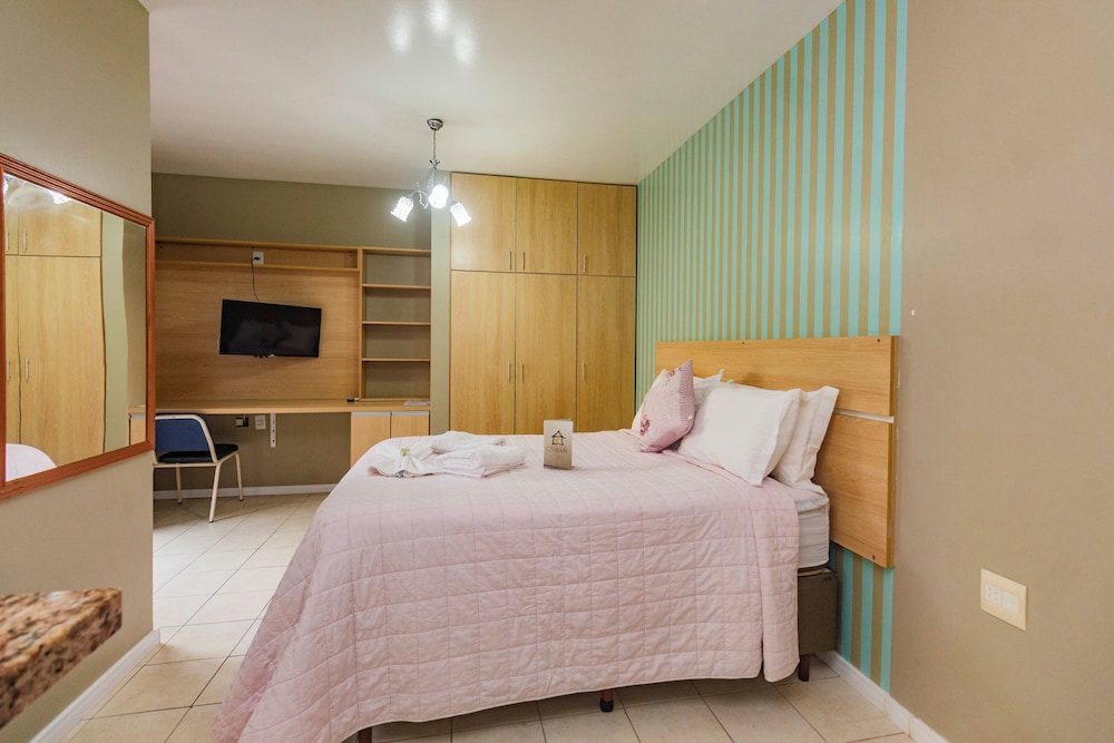 A princípio fomos direcionados a um quarto com um banheiro minúsculo, em que não havia papel higiênico e o secador de cabelo não funcionava. Além disso, estávamos em três pessoas e só havia dias toalhas de banho. Após conversarmos com a recepcionista, fomos trocados de quarto e deu tudo certo. Quanto à piscina, funciona sob agendamento e é preciso pagar pelas toalhas usadas, já que não se pode usar as toalhas do quarto.
