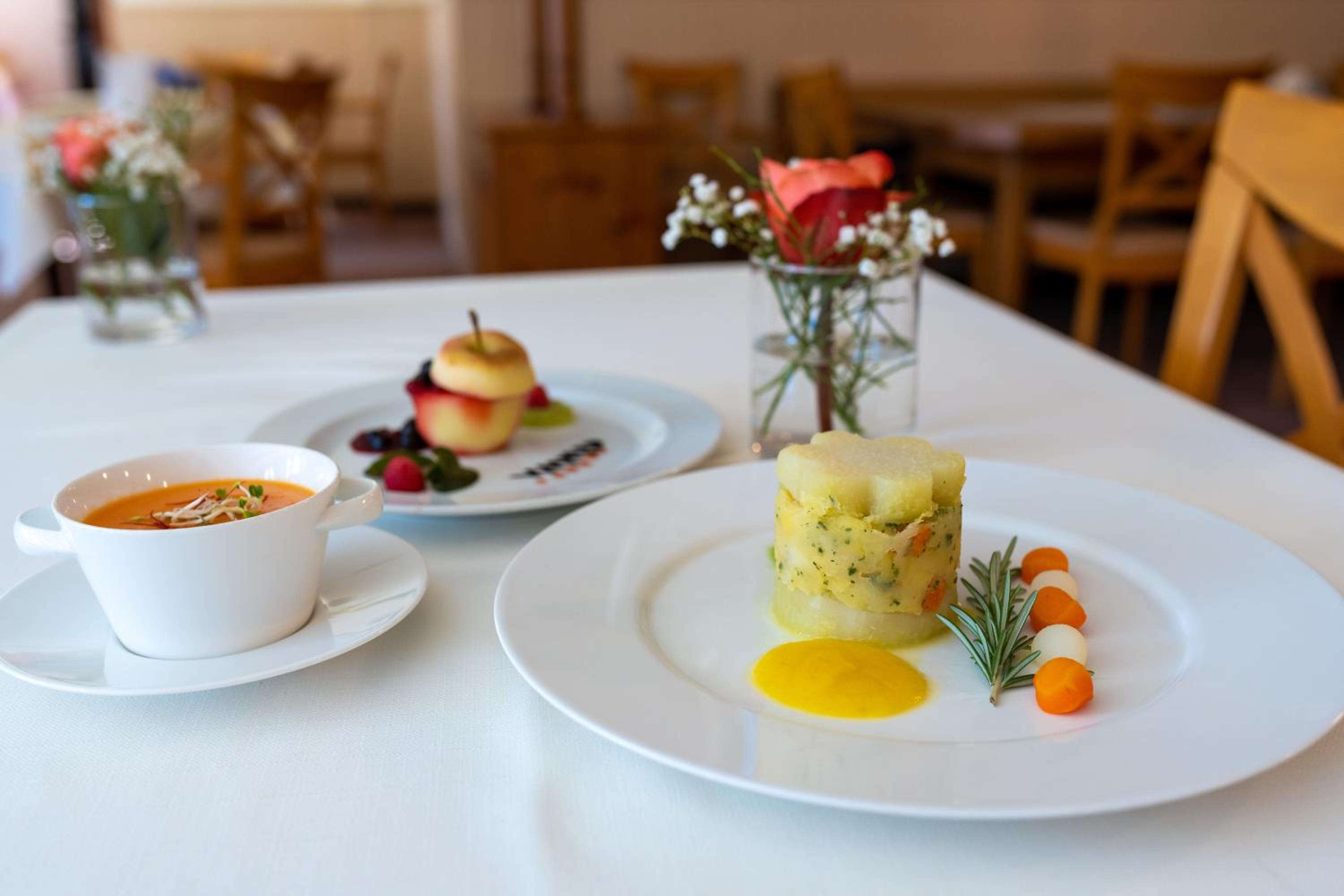 Delicious Dining Options - Savor a variety of hearty regional specialties and healthy dishes in our cosy restaurant or on the hotel terrace surrounded by nature. Our culinary offerings cater to all tastes and preferences.