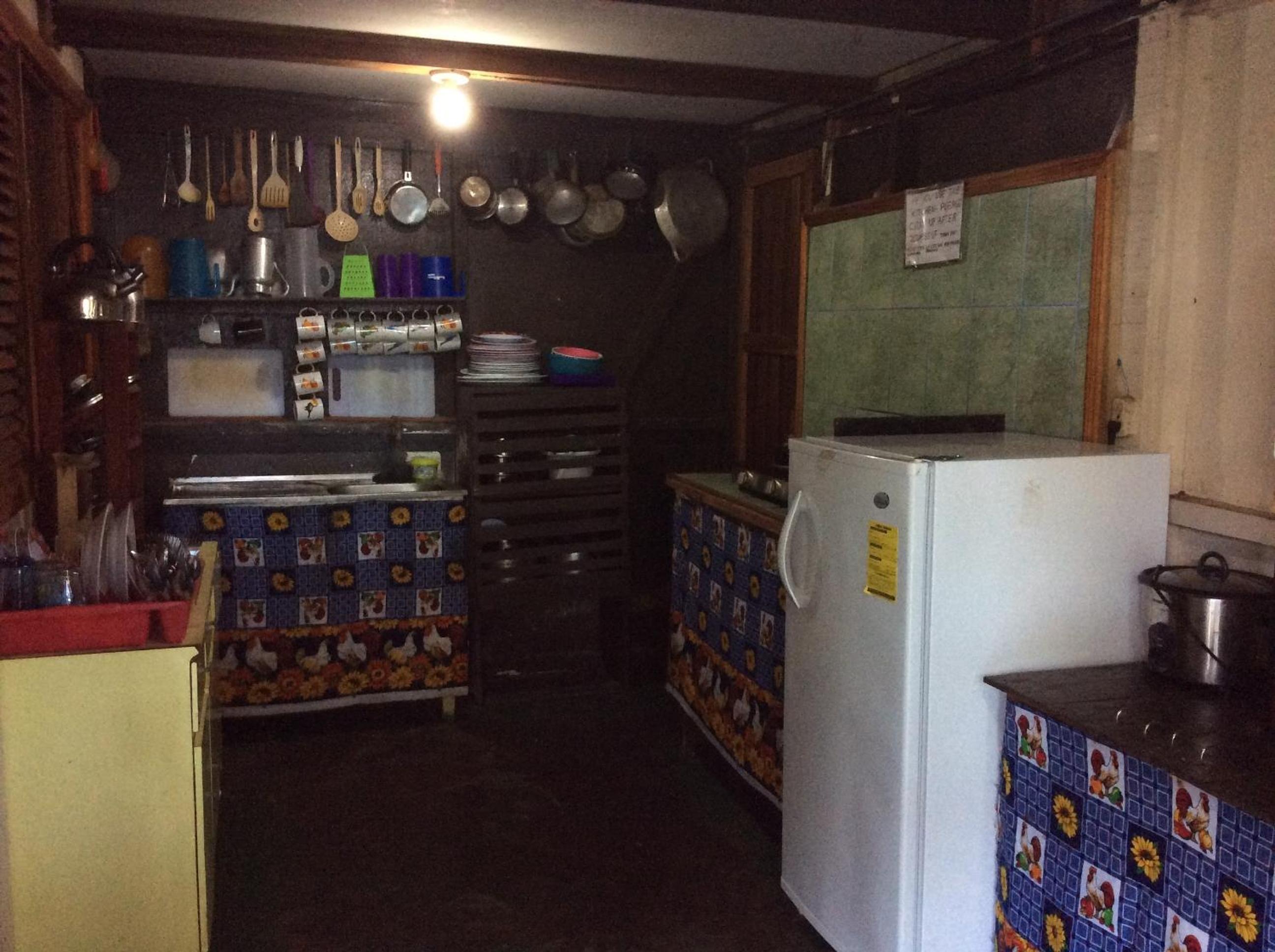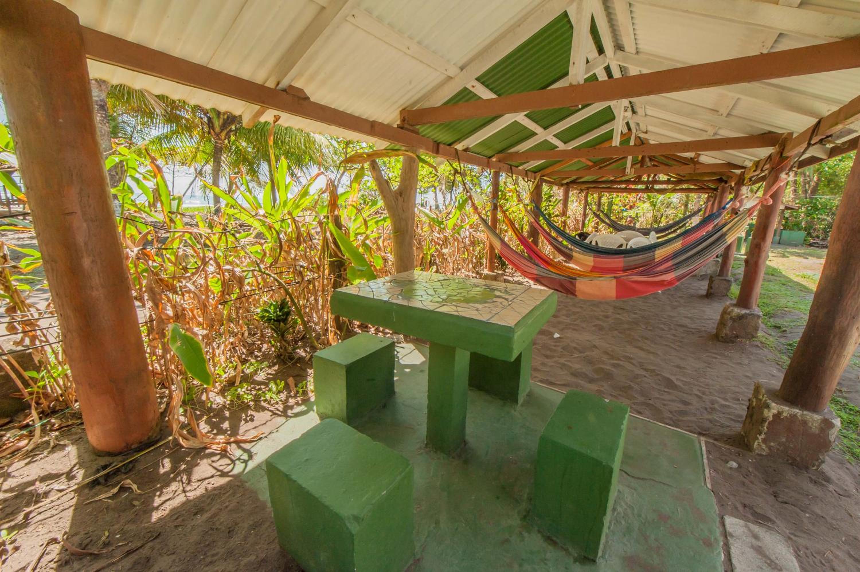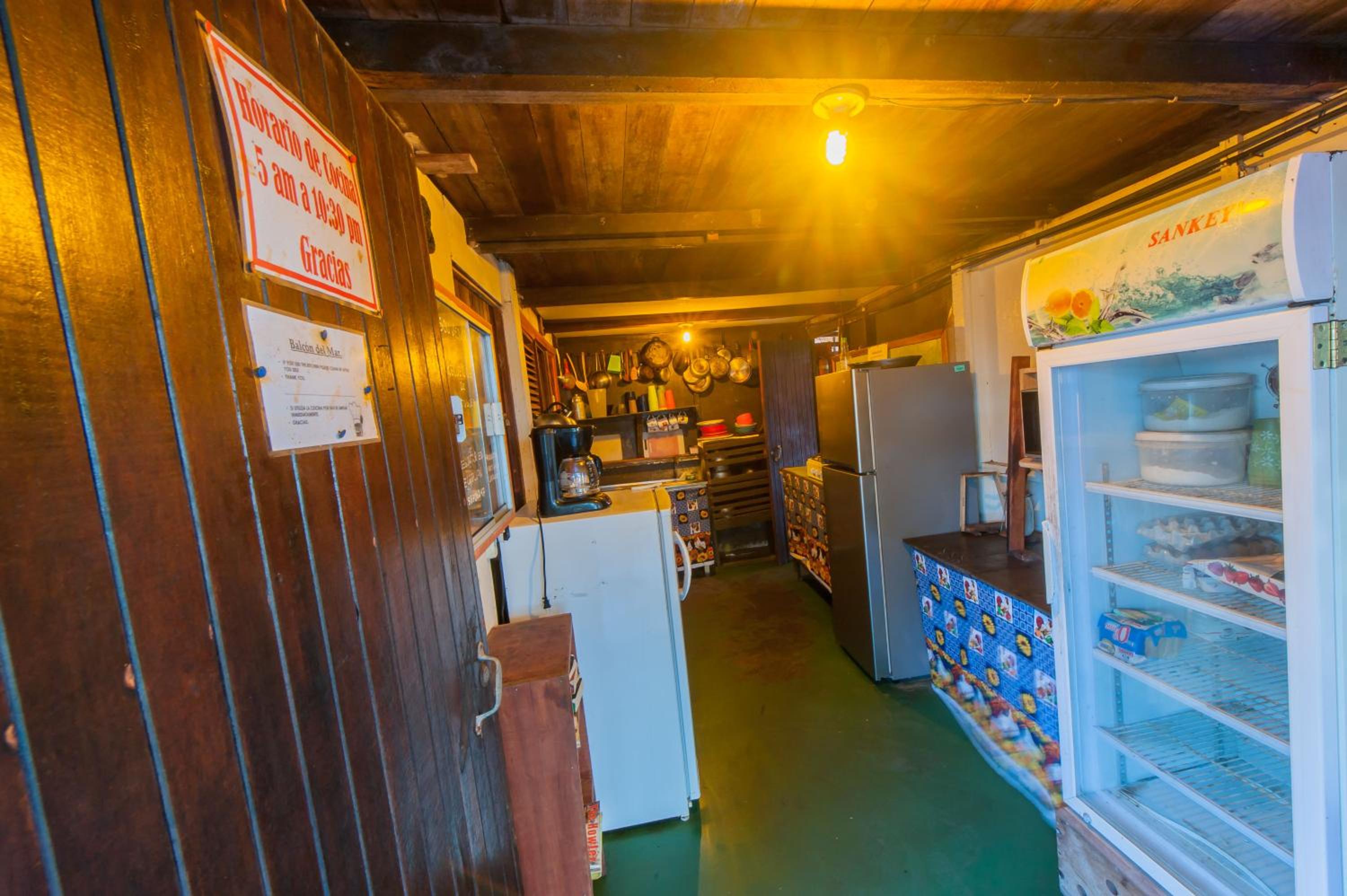 No breakfast but a very convenient shared kitchen which allowed us to make breakfast and keep drinks cool. Hammocks for lounging in and lots of outdoor tables. Our room caught a lovely breeze and view from the ocean. I loved that it was right on the ocean.
