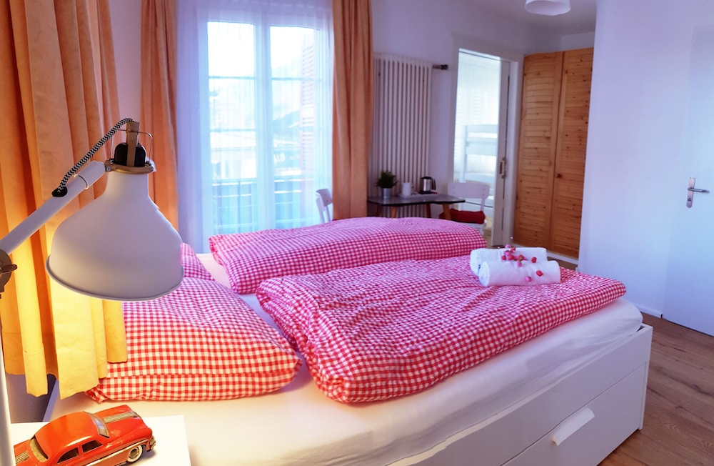 place to stay! Stayed here for 5 nights to go visit the alps. They gave me the room with the huge balcony and it was nice to just sit down, have a drink and watch the alps and relax. It is walkable to the train station but give yourself atleast 8-10mins to walk(i clocked this with a very slow pace and i dont want to sweat coz it was snowing).