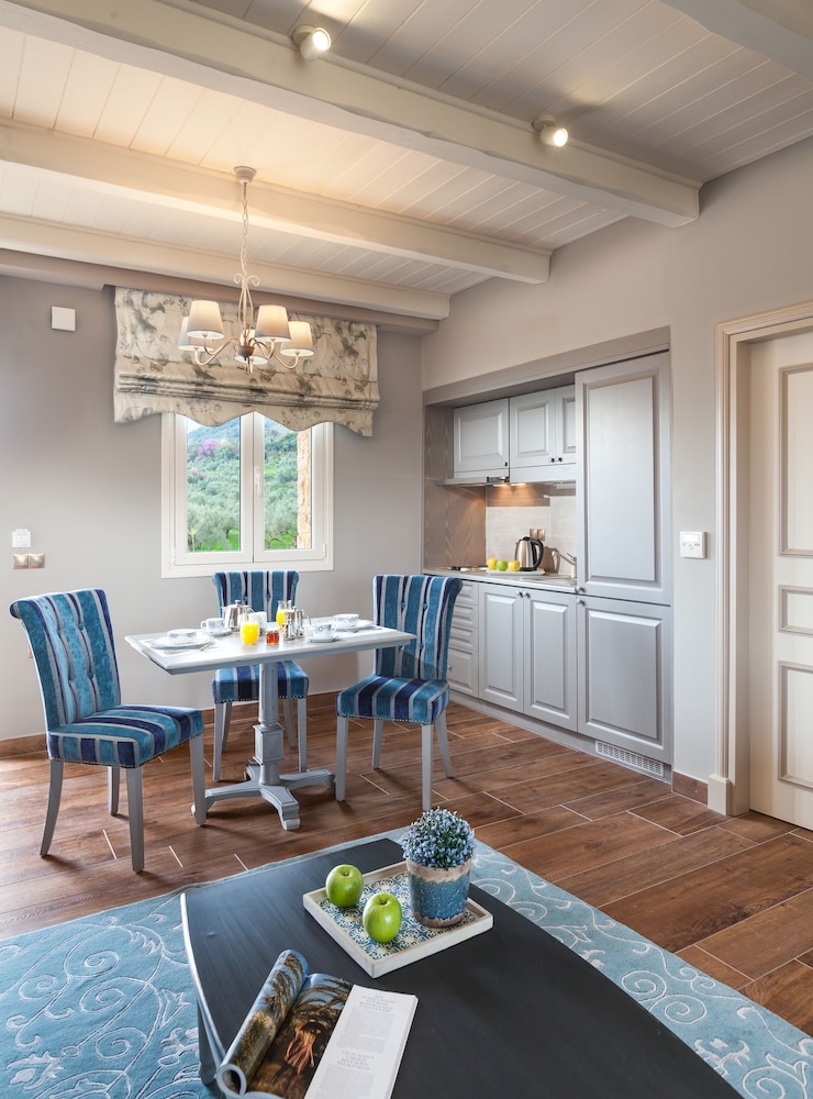 Such a beautiful, unique hotel! Staff members were very professional and helpful. We paid for room service each evening and the meals were fresh and delicious and quite a good deal. Our room had a mesmerizing view of Mystras mountain fortress, and also overlooked a small archeological site on the hotel property, which added a priceless touch to our stay. It was a great value for a spacious, new one-bedroom suite. We would definitely stay here again. Highly recommend!!