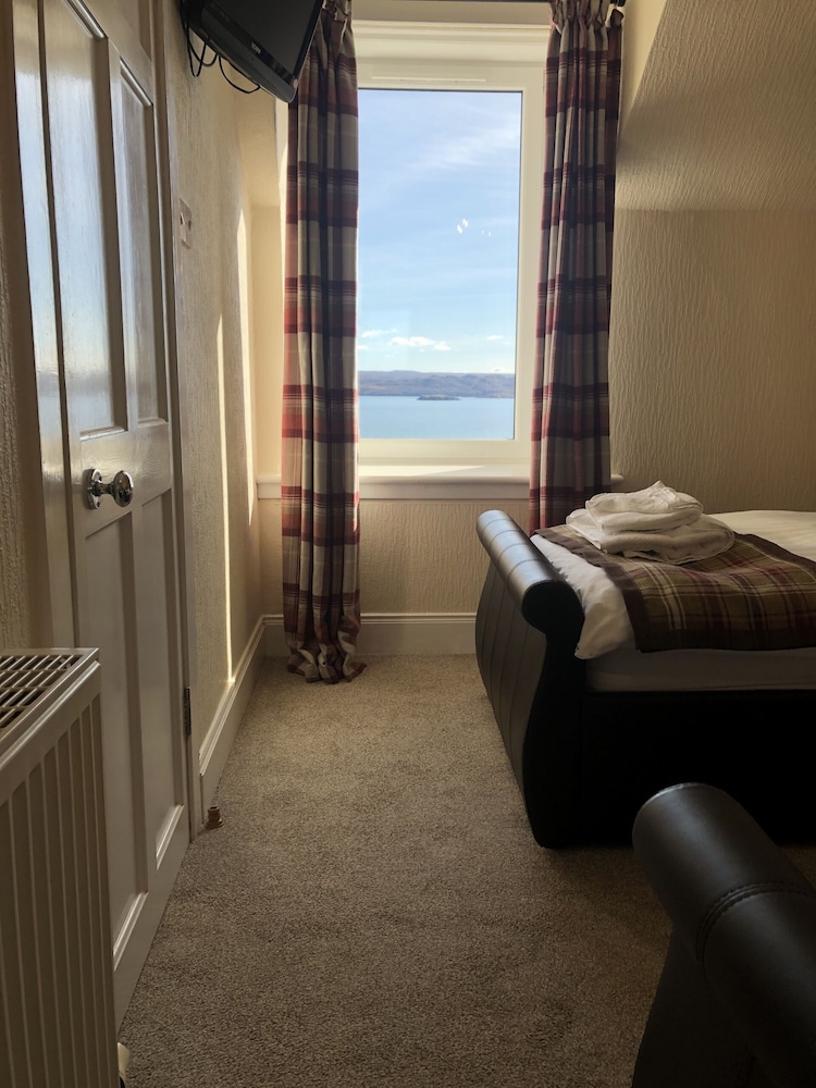 Great, comfortable room with a beautiful view across the loch. A pity that the left window wasn’t cleaned and was covered in salt spray.