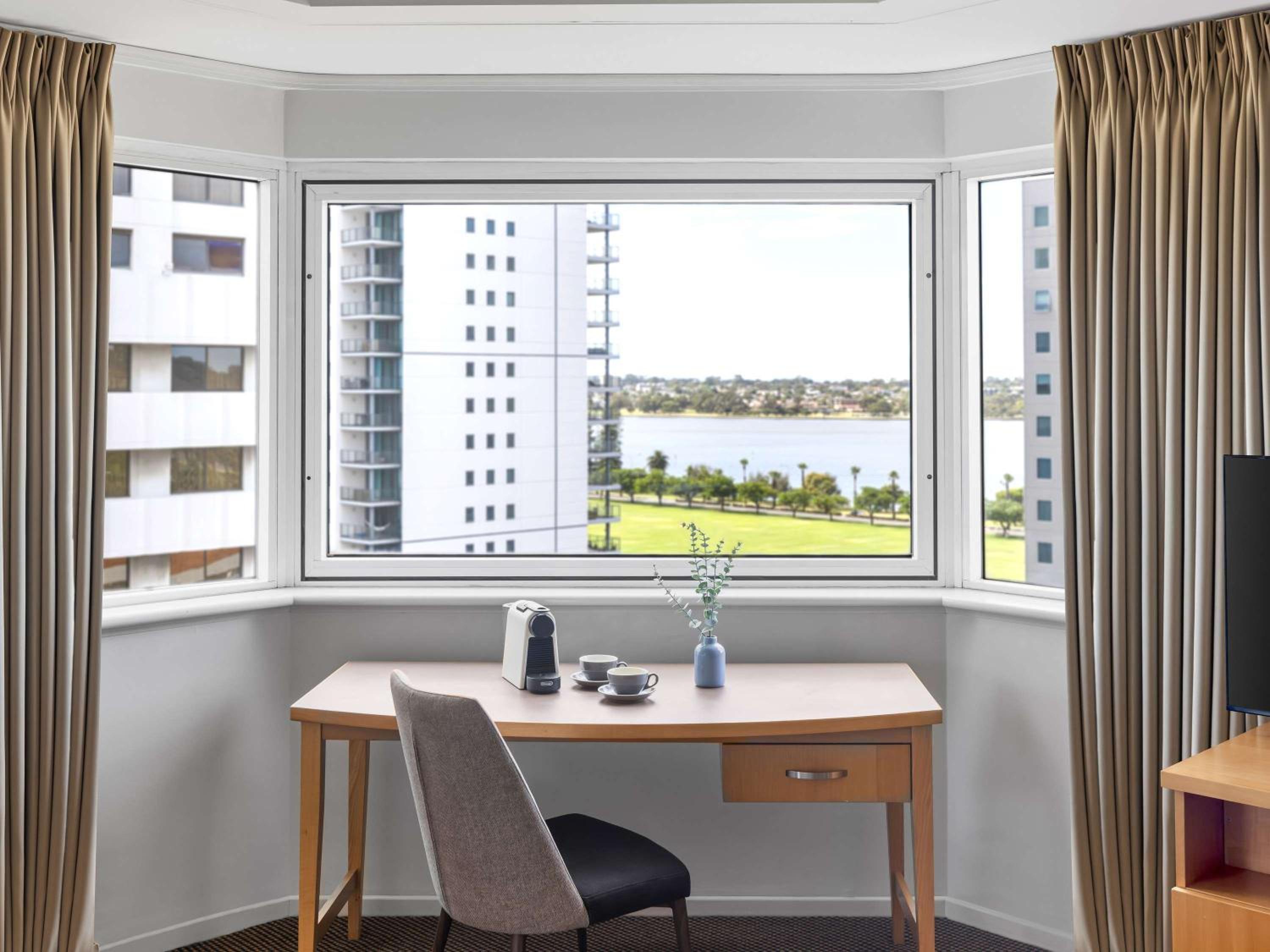 The Novotel Perth Langley offers 4.5-star accommodation with 256 spacious rooms, suites, and apartments providing stunning city or river views. Guests can enjoy modern in-room comforts like flat-screen TVs, wireless phone chargers, and complimentary Wi-Fi and PressReader access.