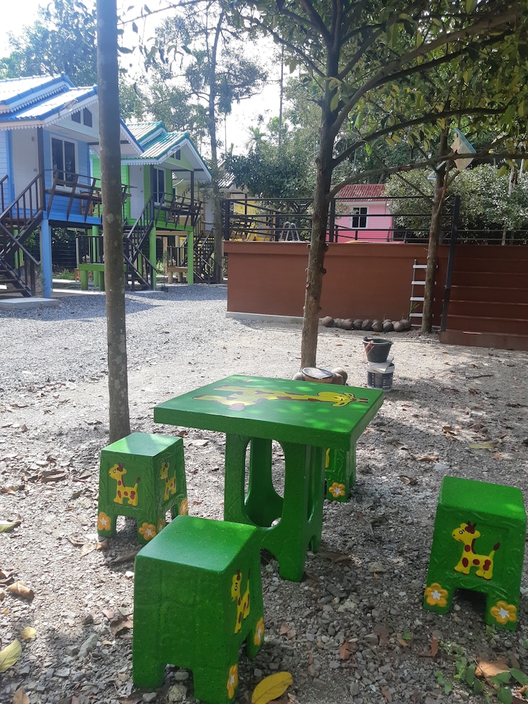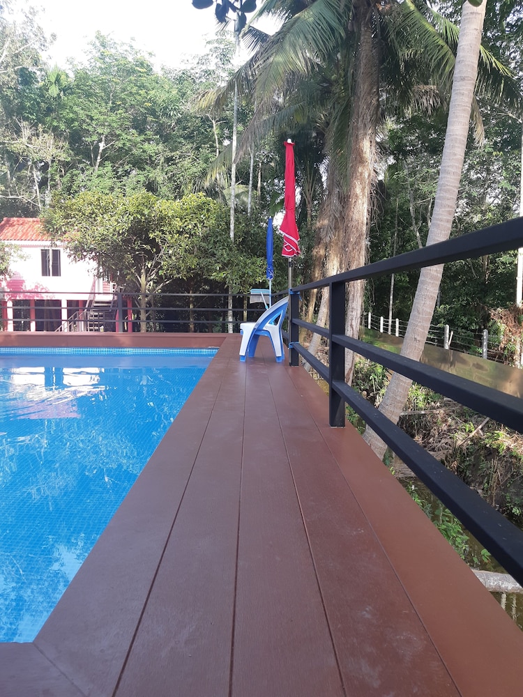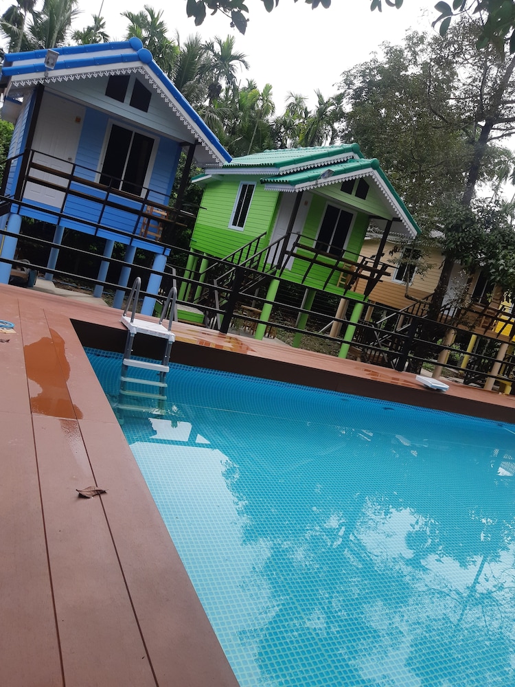 In the resort , it has the home make pool. And so , concrete chairs And table you can relax.