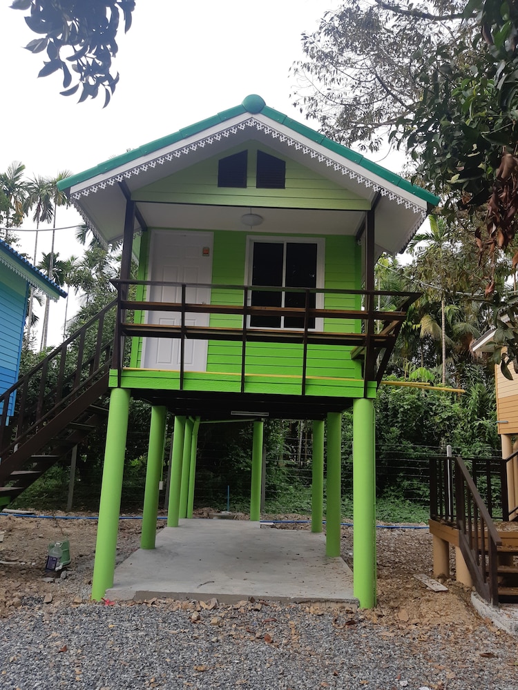 This is small house with parking in resort. Its new and clean with air condition and fan. You can park the car under the room.
