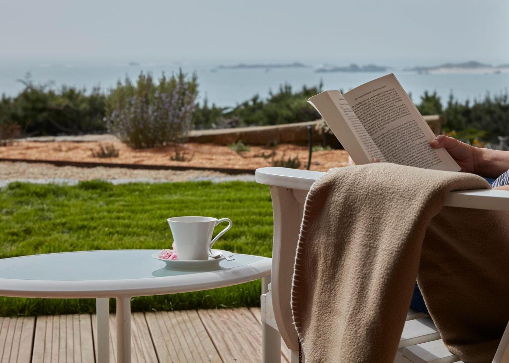 Le grand confort douillet avec vue panoramique sur la mer traversée par les vents et ses îlots roses,le petit déjeuner avec ses produits choisis et maison,le calme bienfaisant de l' établissement.