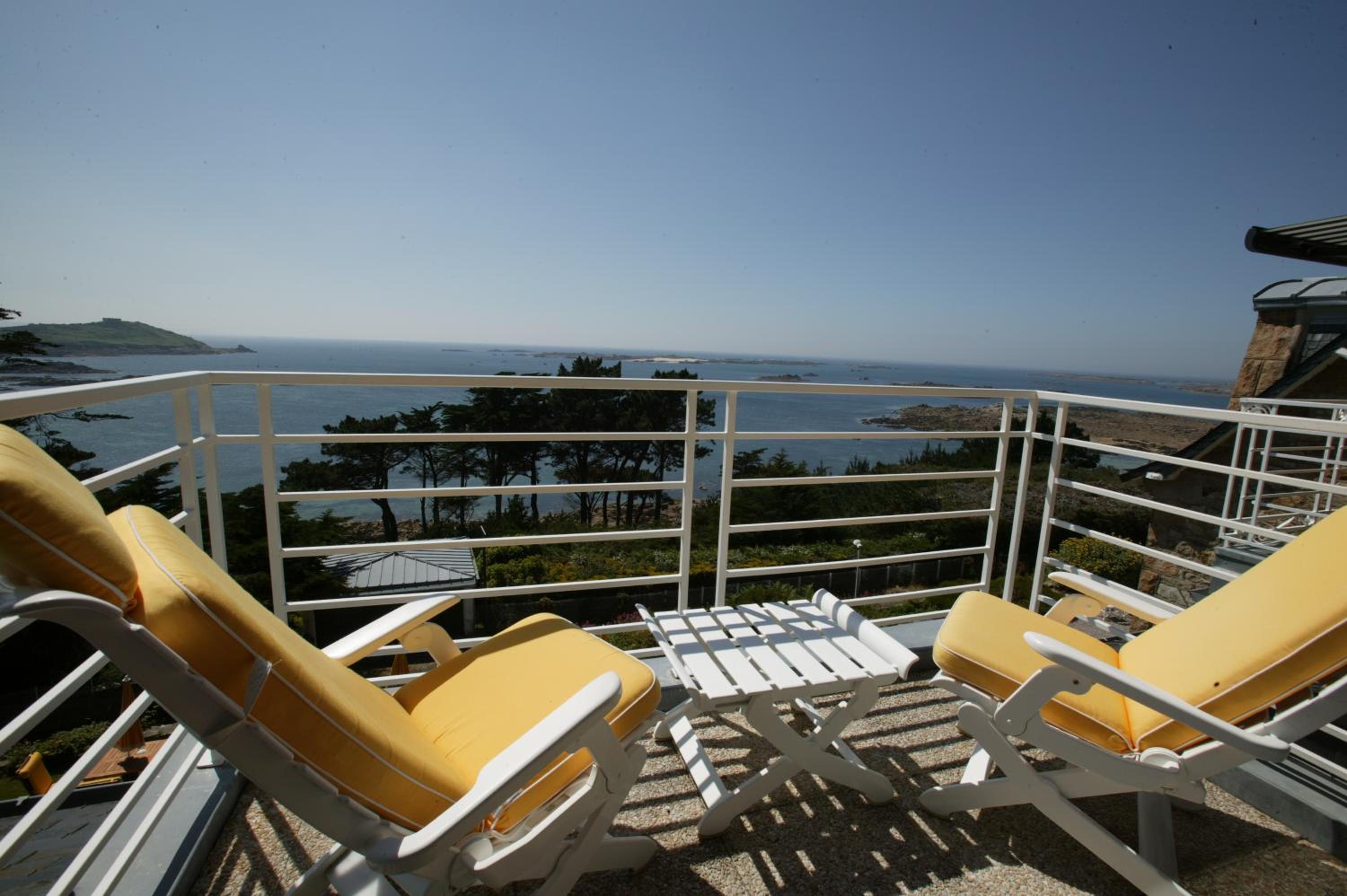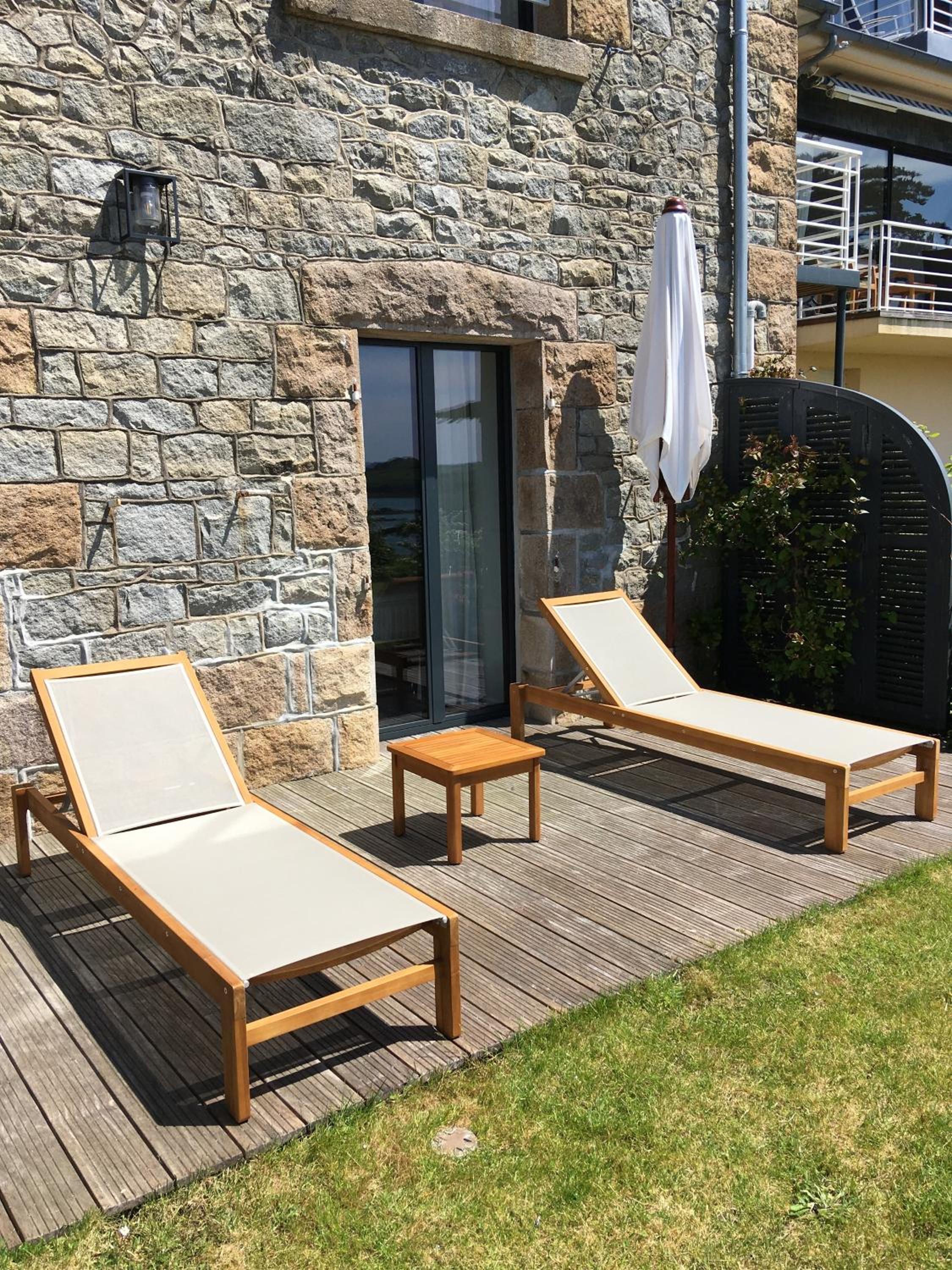 Emplacement avec vue sur mer exceptionnelle car on a eu la chance de profiter des couchers de soleil et de superbes nuit étoilées. Merci à toute l équipe très accueillante du manoir.
