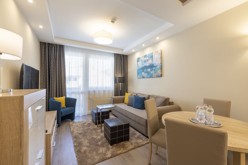 Locatie Foarte buna calitate/pret, studioul foarte spatios si curat cu o mini bucatarie.Aproape de zona centrala si de punctele de atractii.Un mare plus este Parcarea, care este gratuita, la subsolul Hotelului.