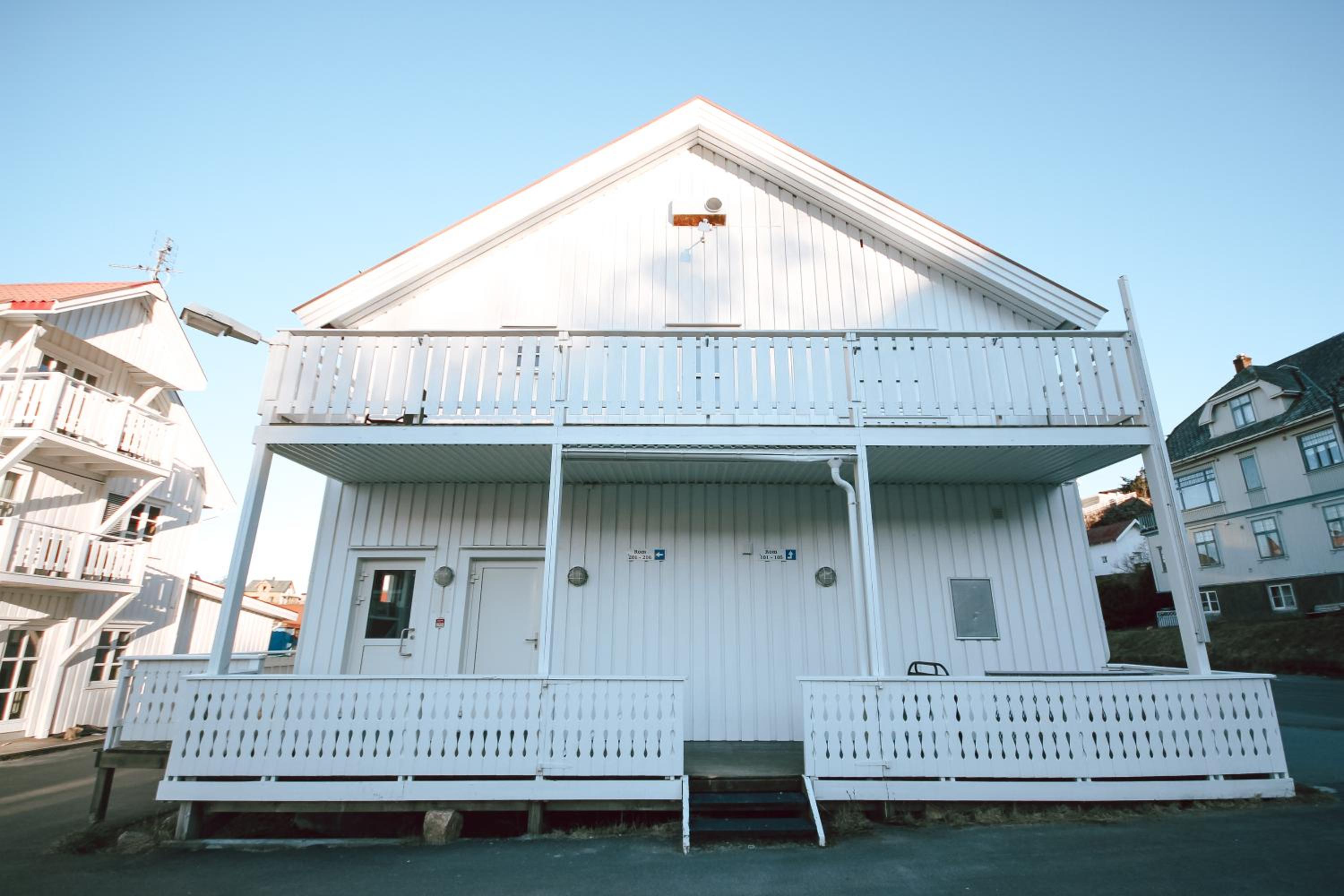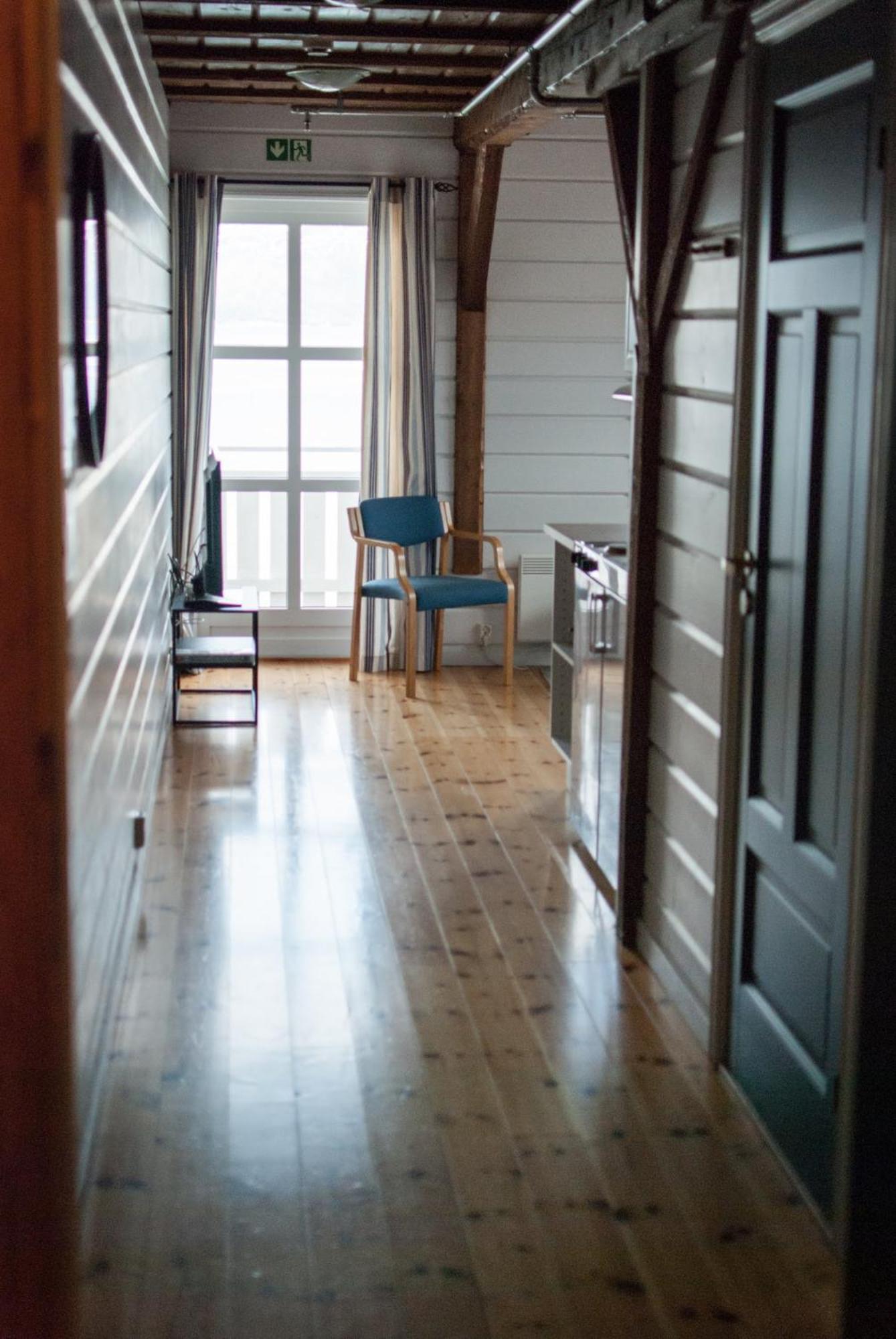 Der Balkon war leider nach hinten, sodass man nur auf das Nachbargebäude schauen konnte, statt in den Fjord.