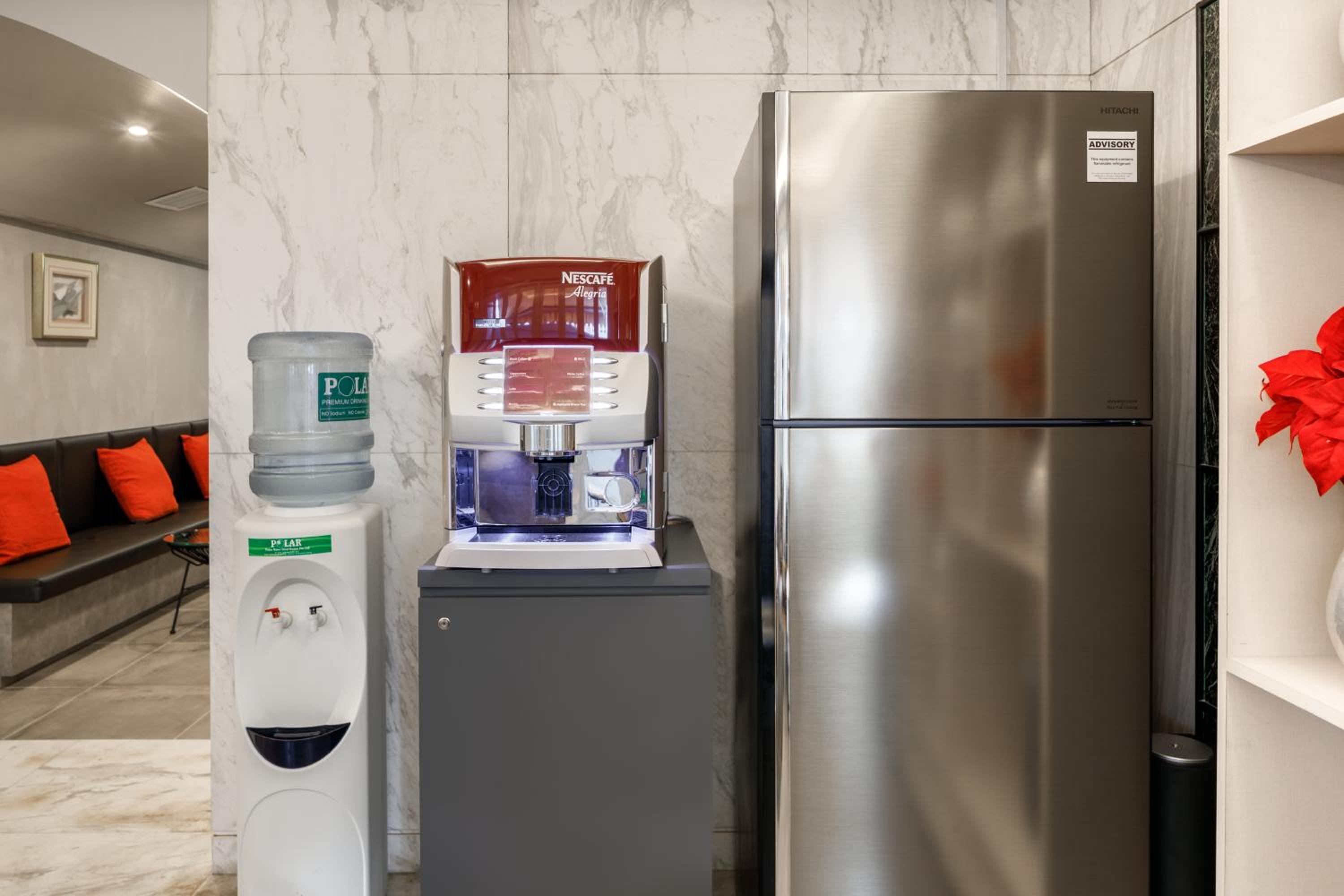 ウォーターサーバーと冷蔵庫が共用エリアにあります。