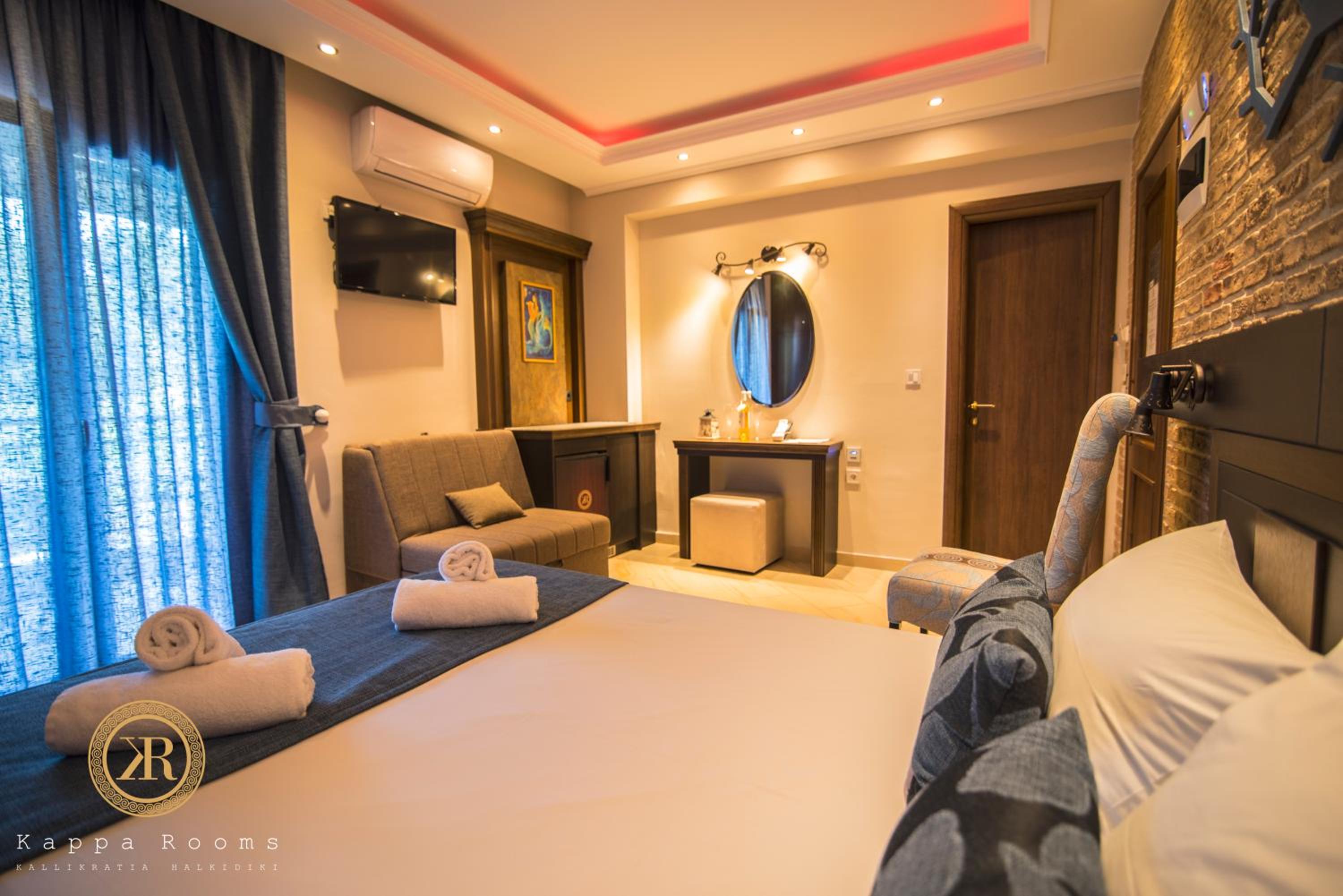 Kappa Rooms in Nea Kalikratia offers luxurious accommodation with free WiFi. Each unit features a flat-screen TV, some with a terrace or balcony boasting sea or garden views. Guests can enjoy a dining area and a fridge in every unit. The private bathrooms come with showers and complimentary toiletries, and bed linen is provided for your comfort.