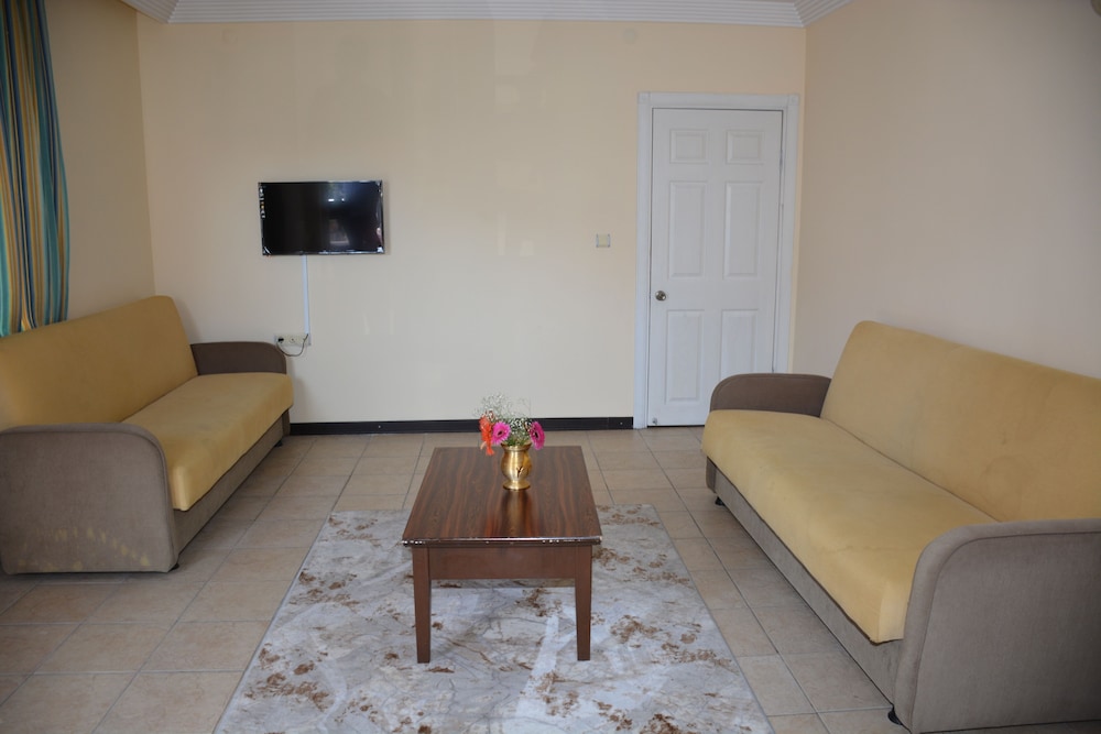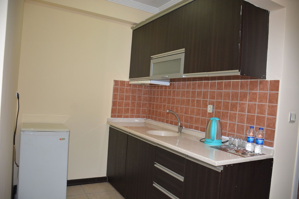 Номера просторные, как бы с миникухней, но из посуды две чашки и чайник. Дама на ресепшене, пытается развести подороже. Продлевали проживание через интернет, на 20 лир дешевле, чем она озвучивала. Когда предъявили, обиделась,сказала, что мест нет. Еле доказали, что оплатили и забронировали. За 6 дней уборки не было ни разу, воды, замены белья и полотенец тоже. Простынка, вместо одеяла, размером на полтора человека при двуспальной кровати. Кран в туалете бежит, раковина засорена. До полуночи шум, крики, стуки - не уснуть. Интернет никакой. Завтраки однообразные, но терпимые. Жить можно, но не долго.