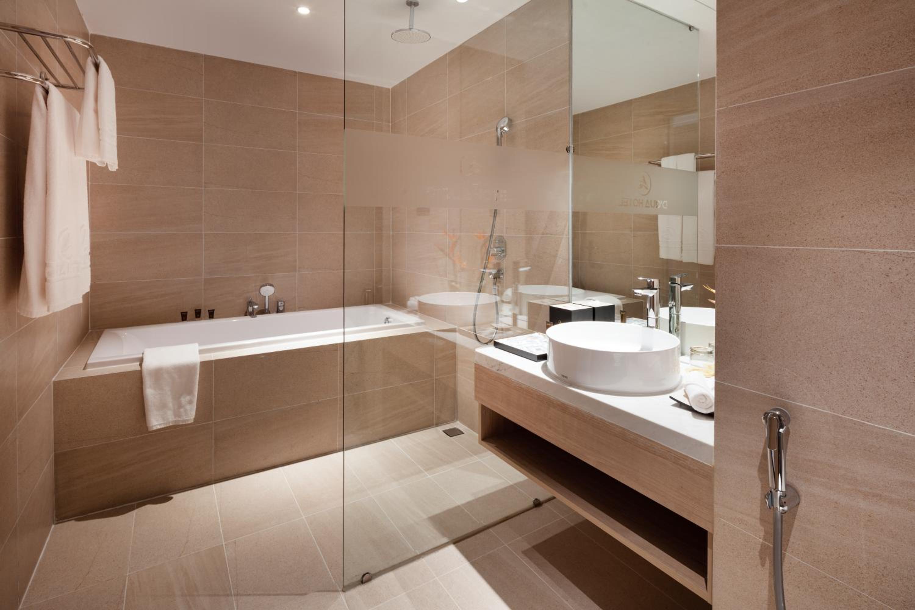 Upon arrival and while walking through the corridors, I noticed that several walls were peeling and visibly damaged, which immediately created an impression of poor maintenance. Although my room was spacious and comfortable, the bathroom design caused water from the bathtub shower to splash outside and leak onto the floor. When I reported this concern to the reception team, I was informed that it was due to the hotel’s design and that nothing could be done.