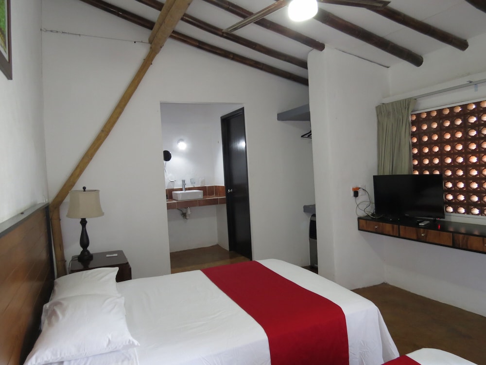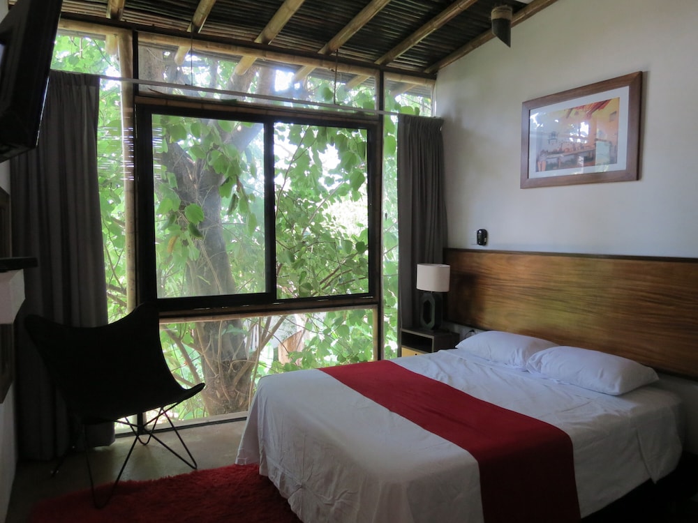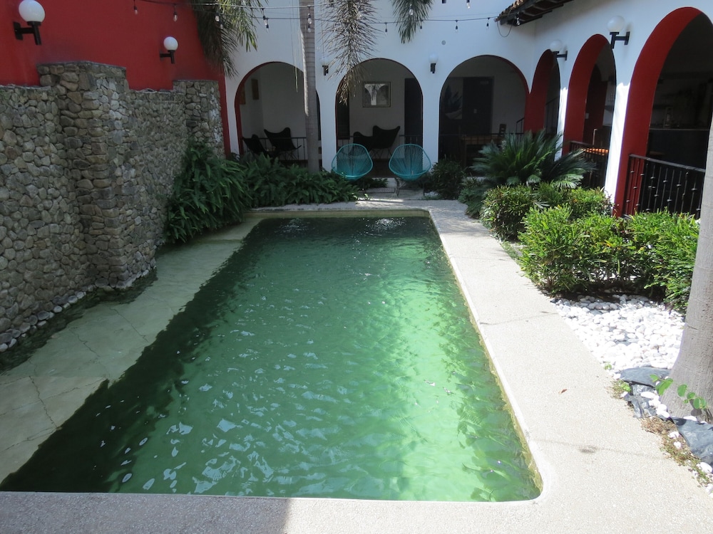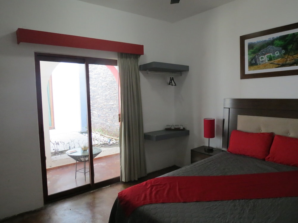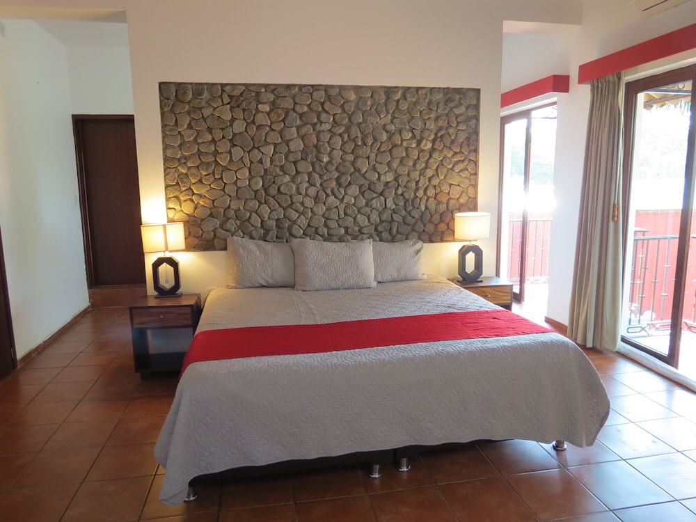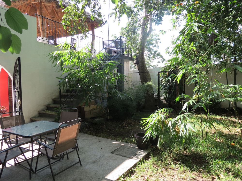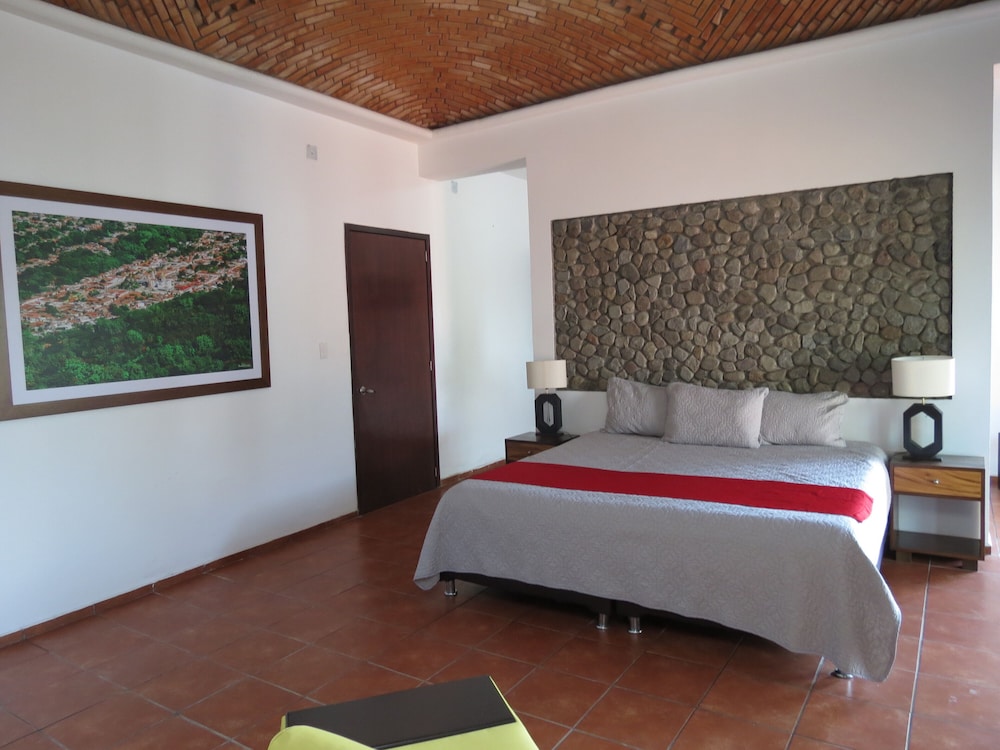 Our GPS took us to a quiet and tranquil block of town, only a block and half from the main plaza and the beautiful colonial church. We were immediately met by Omar, the owner, and he and his staff made us feel at home right away. Our room on the 2nd floor - spacious and with much decorative details and with two balconies facing the hacienda type court with a zen-like pool with peaceful sound of trickling water. Everything from the skin products in the bathroom/jacuzzi to the down comforter and the quiet solar-powered a/c unit we truly enjoyed our suite during our stay. Early am we would take advantage of the big palapa facing the gardens, enjoying cafe de olla with sounds of frogs, roosters and crickets by the small river and church bells, as the town was waking up. We researched the hotels in Comala and decided on Los Suspiros, despite very few reviews and we are so happy that we did. We simply couldn’t’ have had a better anniversary stay than we did. The owner, Omar, an architect who won a national award for the ecodesign and restoration of this very hotel, even took the time to take us El Jacal de San Antonio on our anniversary day - a fabulous restaurant in the high mountains - reminding us of Switzerland - with breathtaking views of El Nevado de Colima (vulcano) and small ranches with horses and cattle. We slept so well that night. Thank you Omar and your staff for our memorable stay!!
