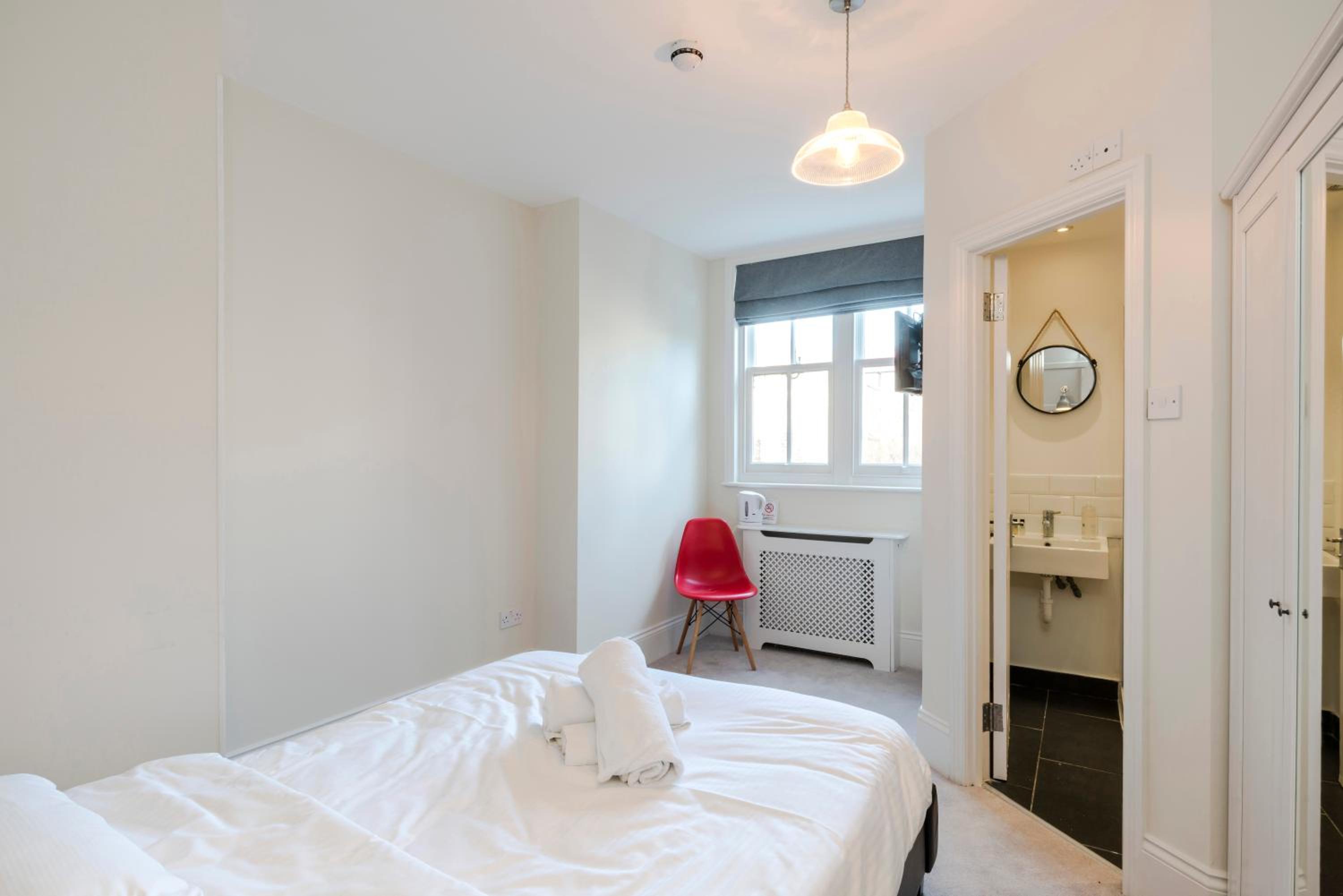 Indulge in our elegant boutique-style rooms, each equipped with a TV and modern en-suite bathroom. Perfect for a comfortable and relaxing stay after a day of sightseeing in London.