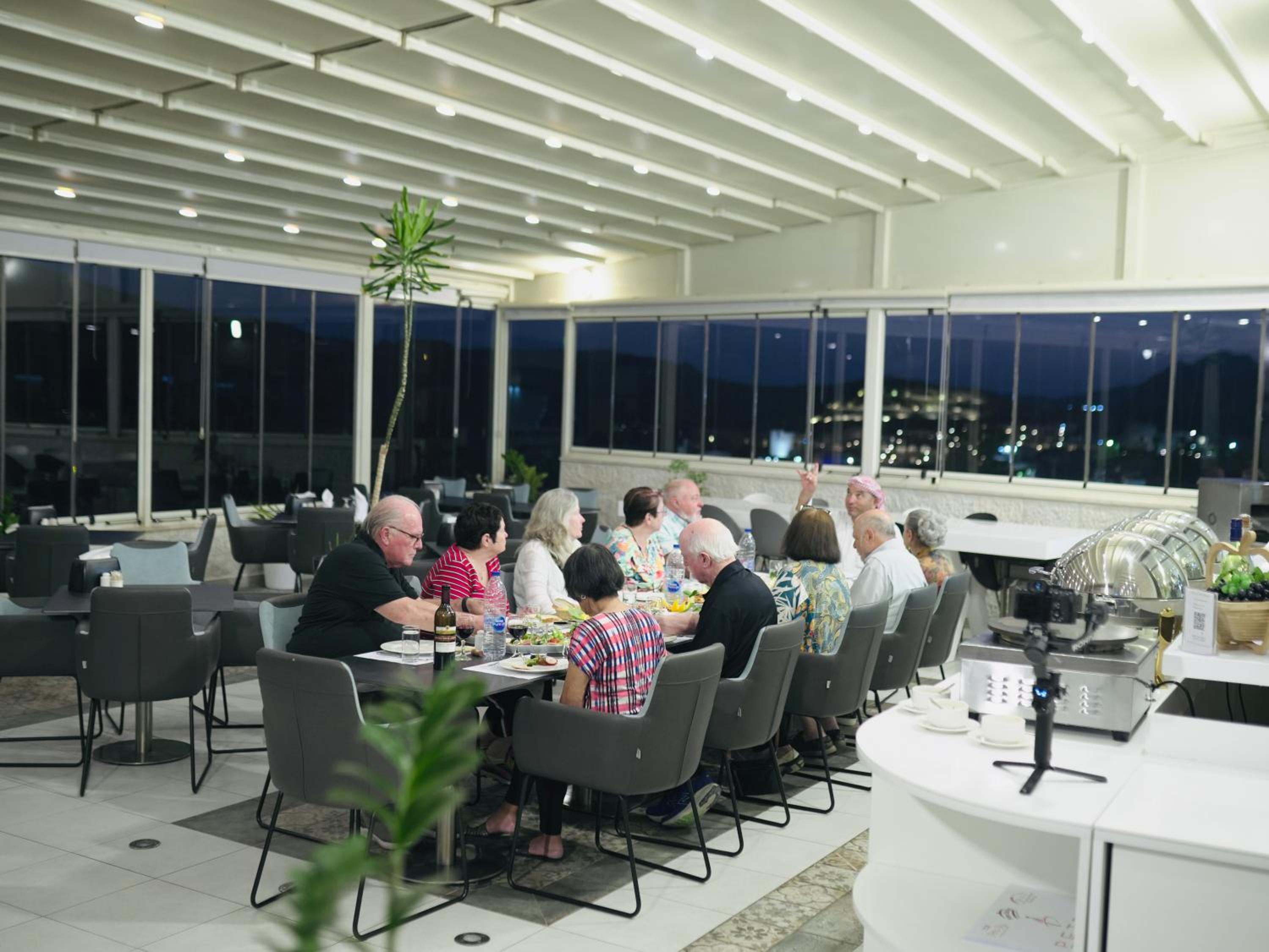 This is a lovely little place very close to the entry gate to Petra. It was built just after the pandemic, so it’s only a few years old, and it seems to be family run. Our room was one of the few with a balcony and it had a nice little sitting area as well. There was a small bath, with very limited space for toiletries, but it was clean. The bed was pretty hard, but OK for us. There were 2 robes, 2 bathrobes, 2 chairs – great! The mini fridge was nice to have. The breakfast buffet was very nice with a good selection of things, including eggs cooked to order, and a very attentive staff. But the fruit juices were terrible – the orange juice was like Tang. Dinner was also quite it good, serving Jordanian specialties. All of the staff was friendly and helpful. For a new hotel, it was odd that there were so few electrical outlets and no USB ports in the rooms. But overall, it was a very nice place and we’d definitely return.