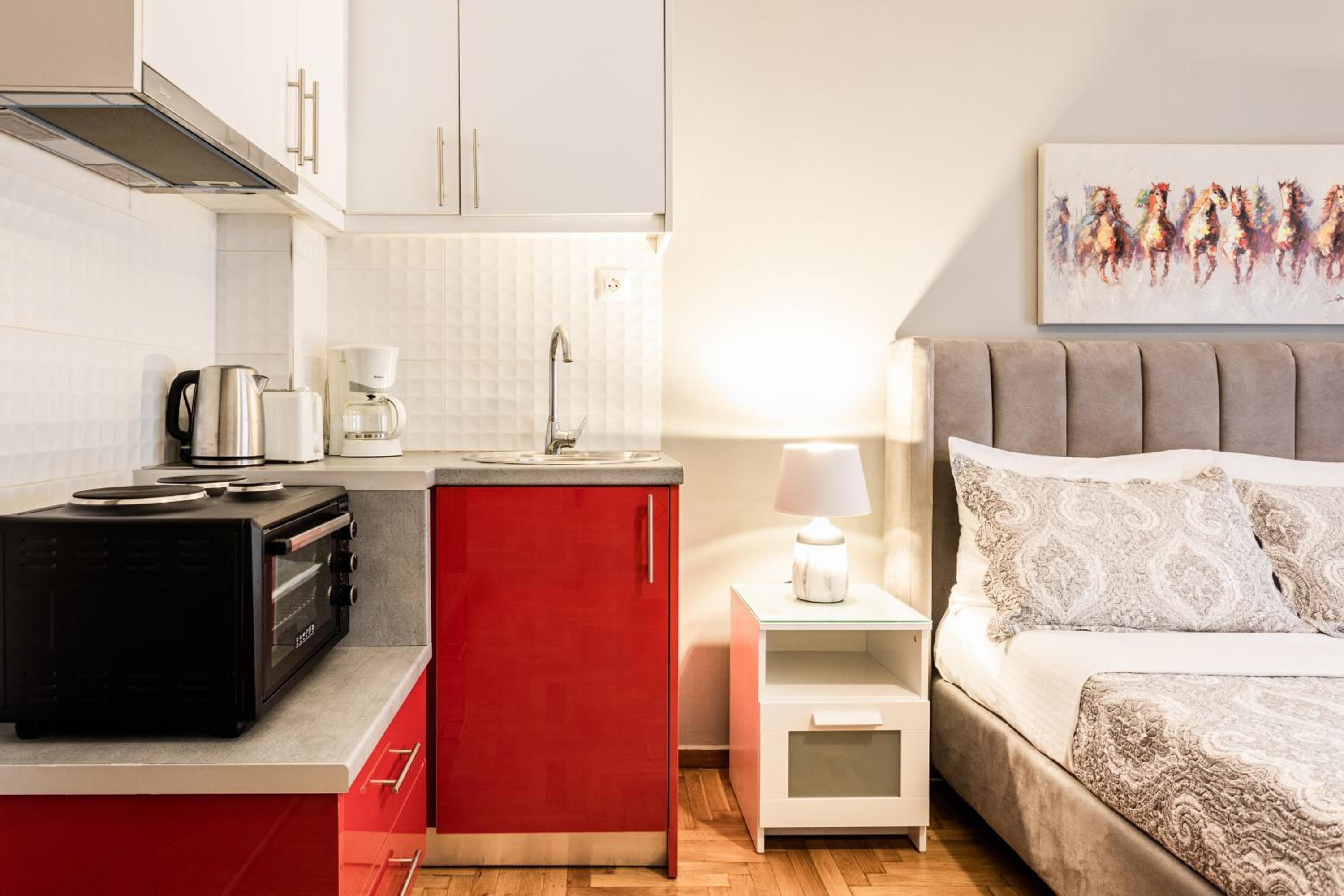 Nicholas Point Apartments and Rooms in Athens offer peaceful street views and are conveniently located near major attractions like the National Archaeological Museum and National Theatre of Greece.