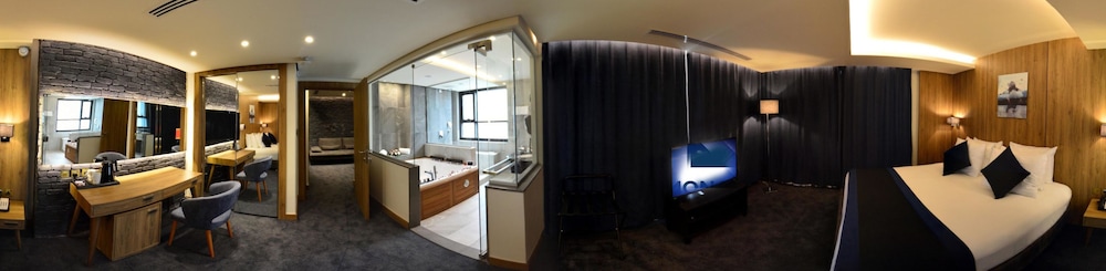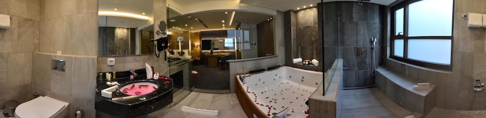 The hotel boasts a ballroom, wedding services, a computer station, and a TV lounge, ensuring a luxurious stay. Guests can also enjoy a roundtrip airport shuttle and free valet parking.