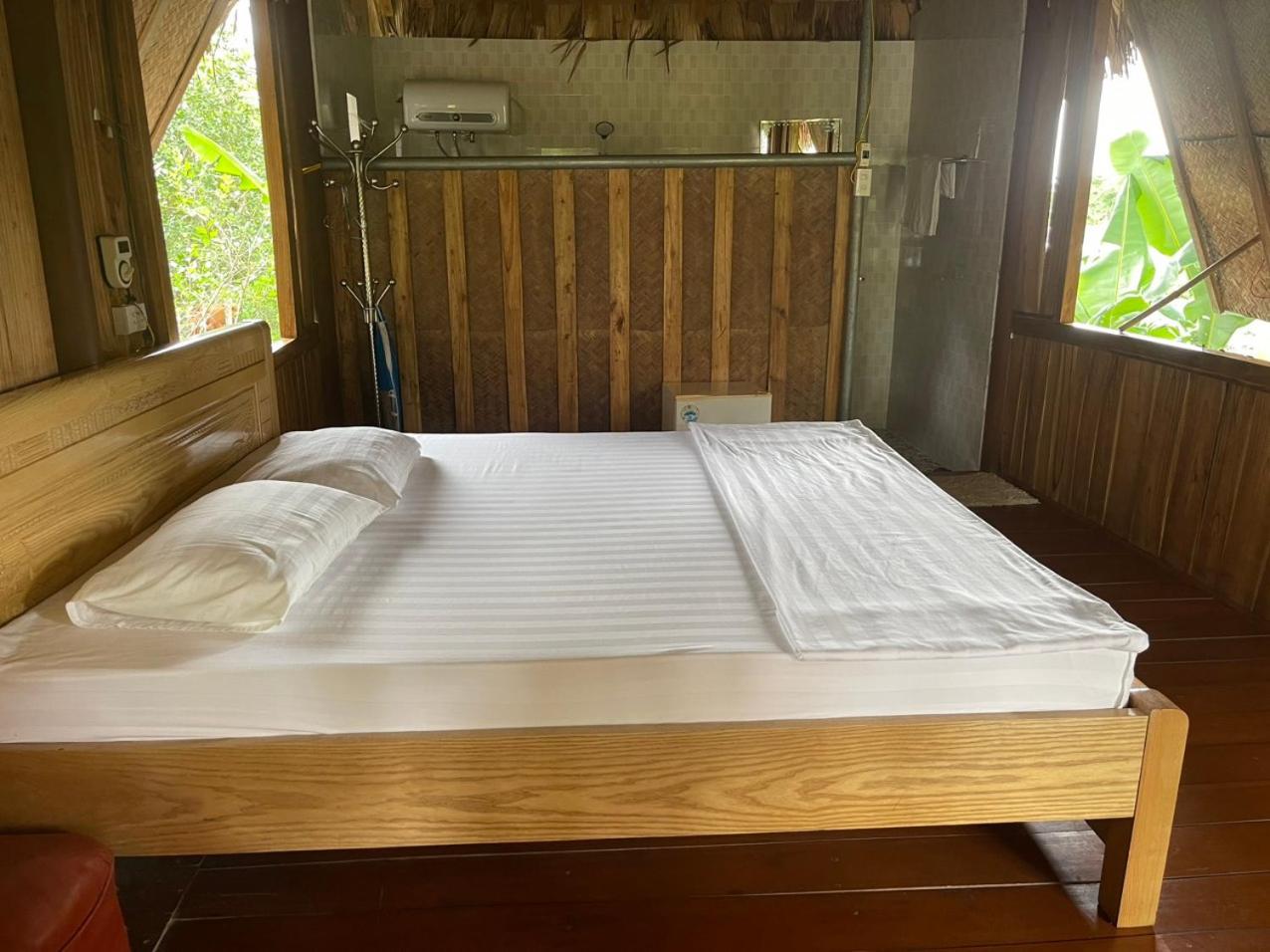 Our bungalow didn't have glass in the window, only shutters. They didn't fit very tightly so insects did come in - an insect mesh over the window would have been a good addition. As is often the case in Vietnam, the beds were rather hard for our tastes.