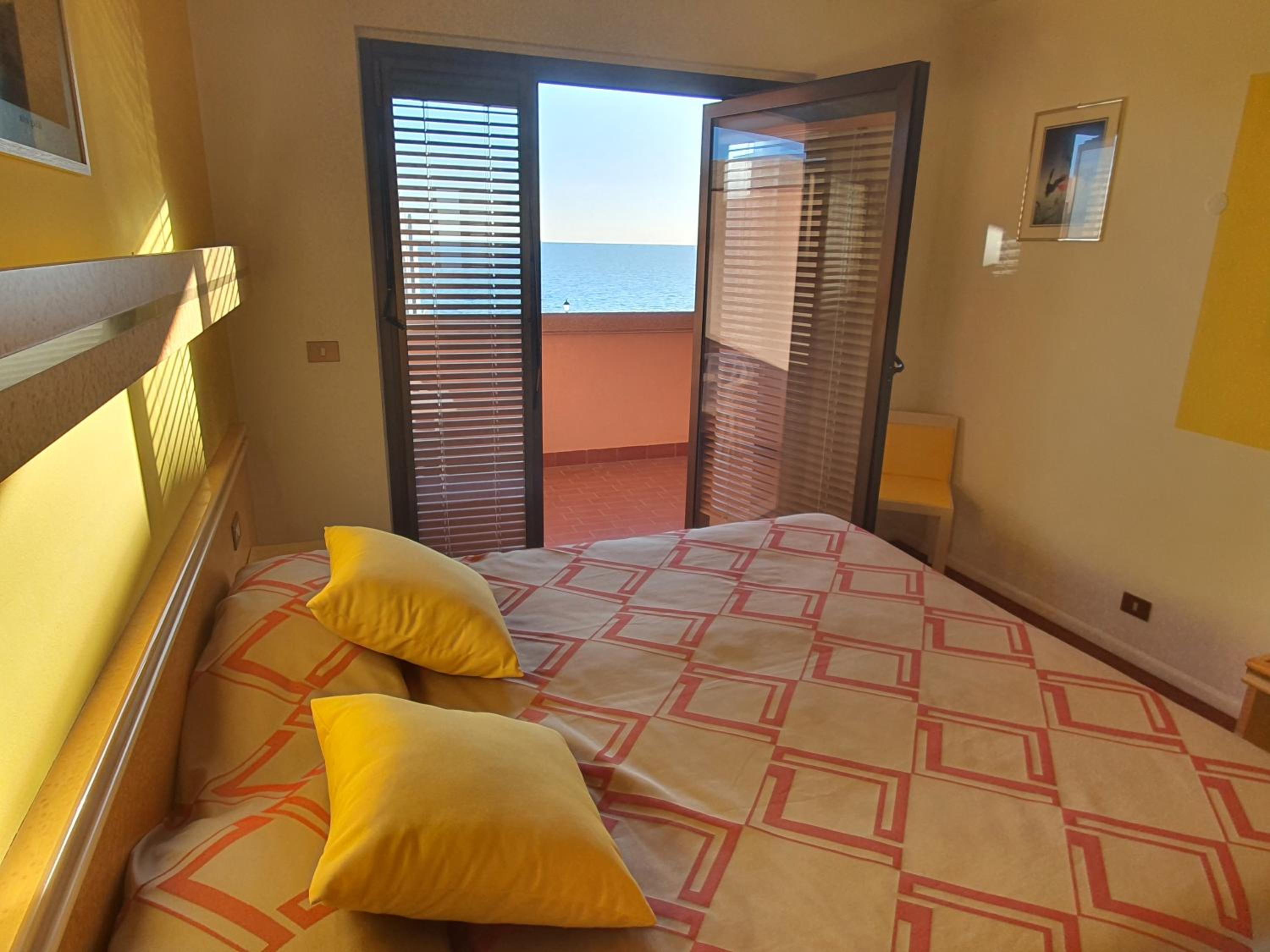 La camera: piccola e con letto matrimoniale con soli due lati liberi, prese di corrente e interruttori dietro i cuscini (la camera sembrava adatta a essere e allora al posto del cuscino ci sarebbe stato il comodino che avrebbe giustificato prese e interruttori), cuscini durissimi, testata del letto tutta piena di polvere, una veneziana della finestra era rotta e inutilizzabile, il tavolino esterno scrostato e arrugginito.