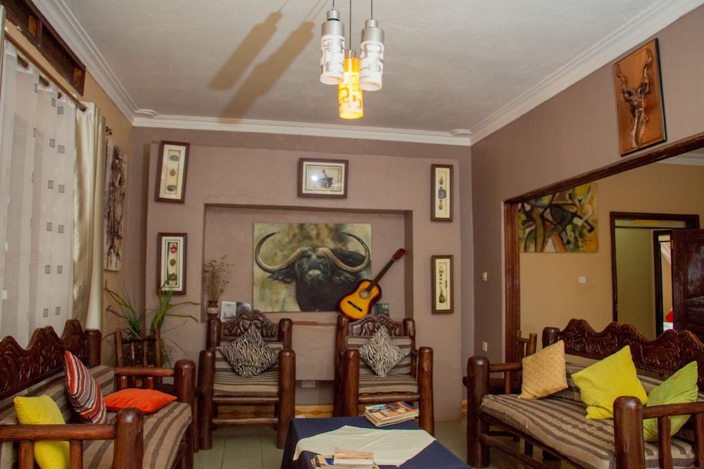 Das Hotel ist etwas ausserhalb. Ruhig gelegen und mit Bodaboda sehr gut erreichbar.Schöner Garten.