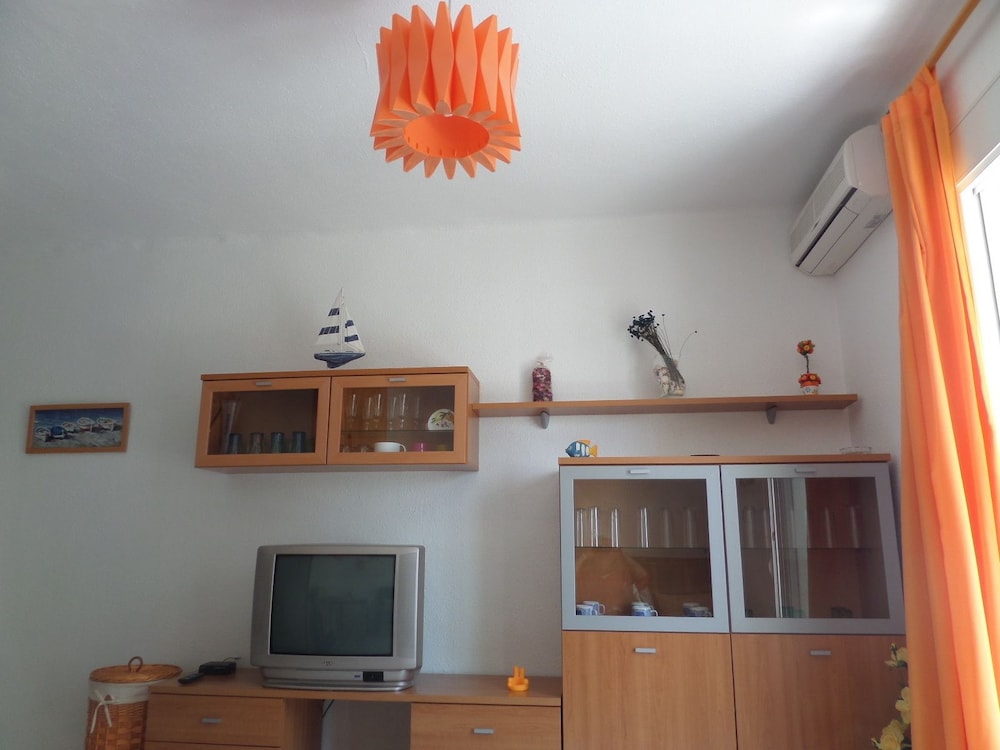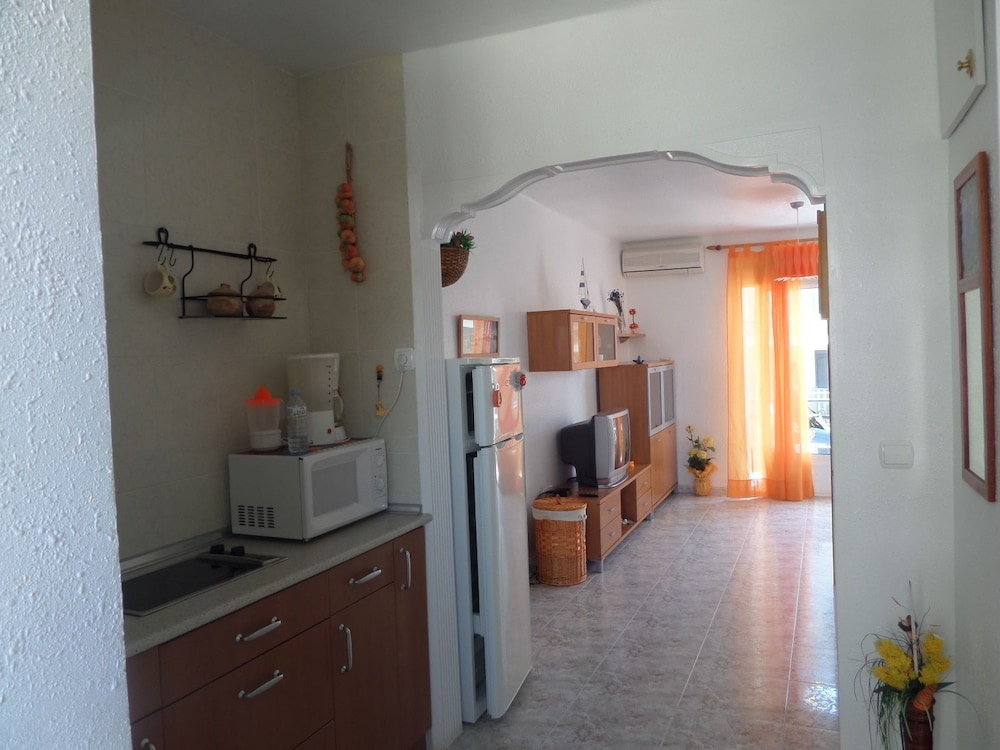 Unwind with a refreshing drink at the beach bar after a day of adventures. The apartment offers a kitchenette, private balcony, and modern amenities like wireless internet access for a fee.