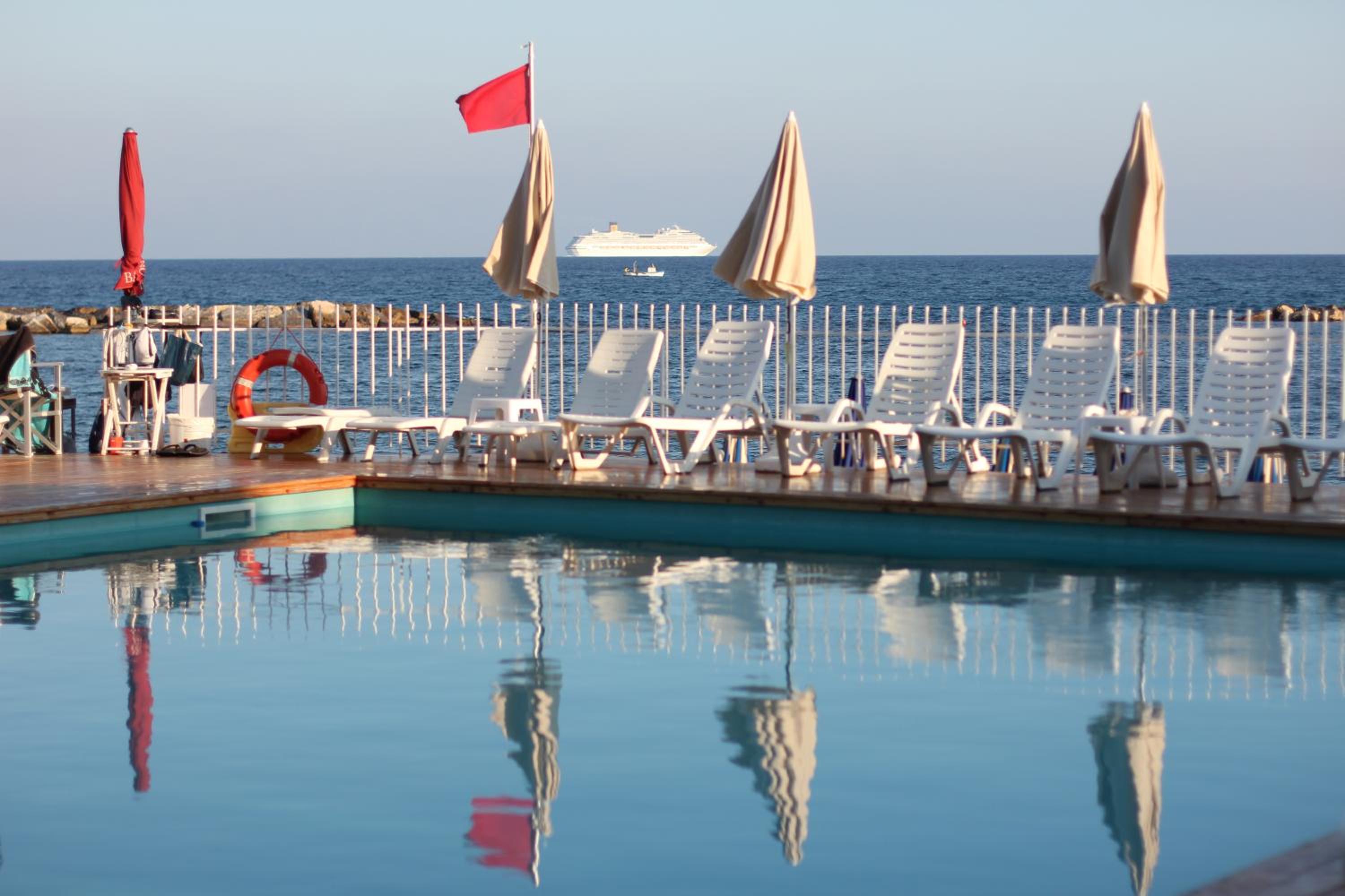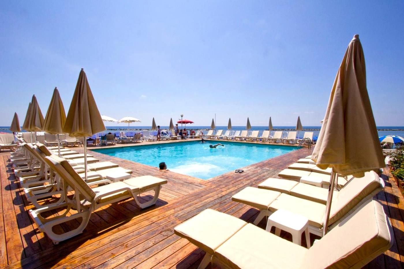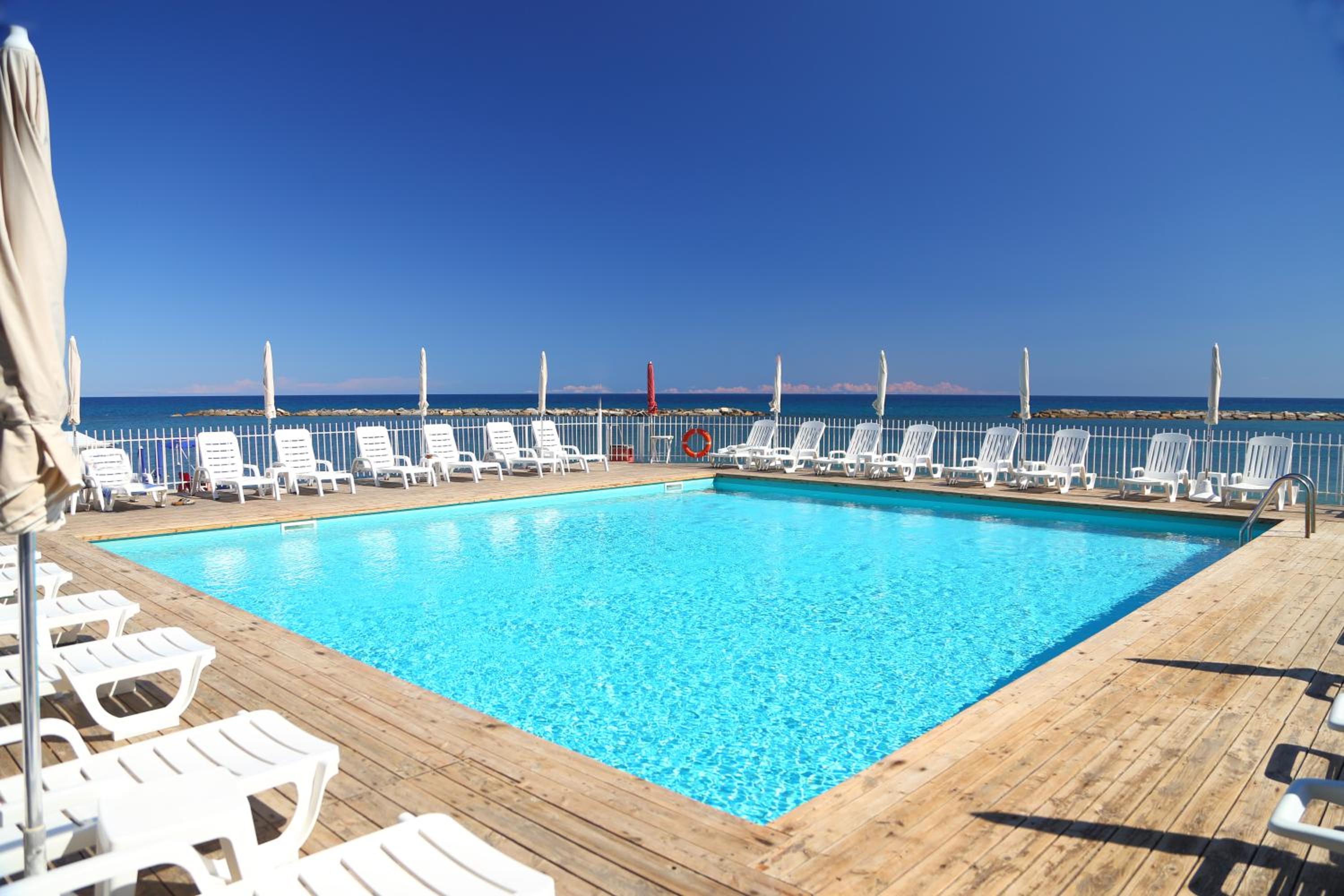 Seaside Relaxation: Hotel Mayola offers a perfect beachfront retreat with a seasonal outdoor pool, hot tub, and sun terrace for ultimate relaxation.