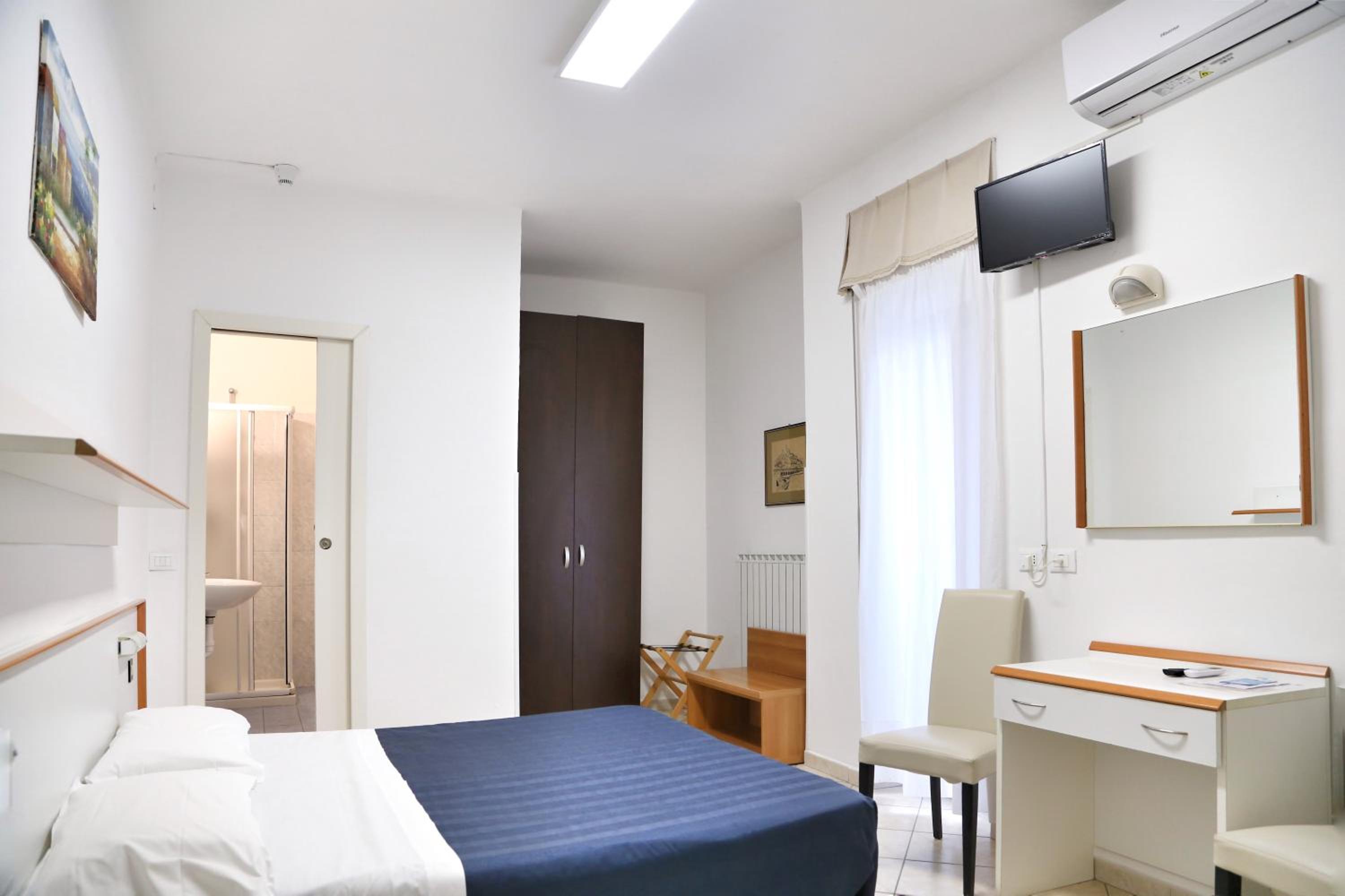 Stanze età della preistoria, pavimento con irregolarità, letto singolo a 20cm da terra, bagno minuscolo con doccia 70x70 e bidet impossibile da usare per la posizione scomodissima attaccato alla doccia e attaccato al muro. X una notte ok, oltre no.