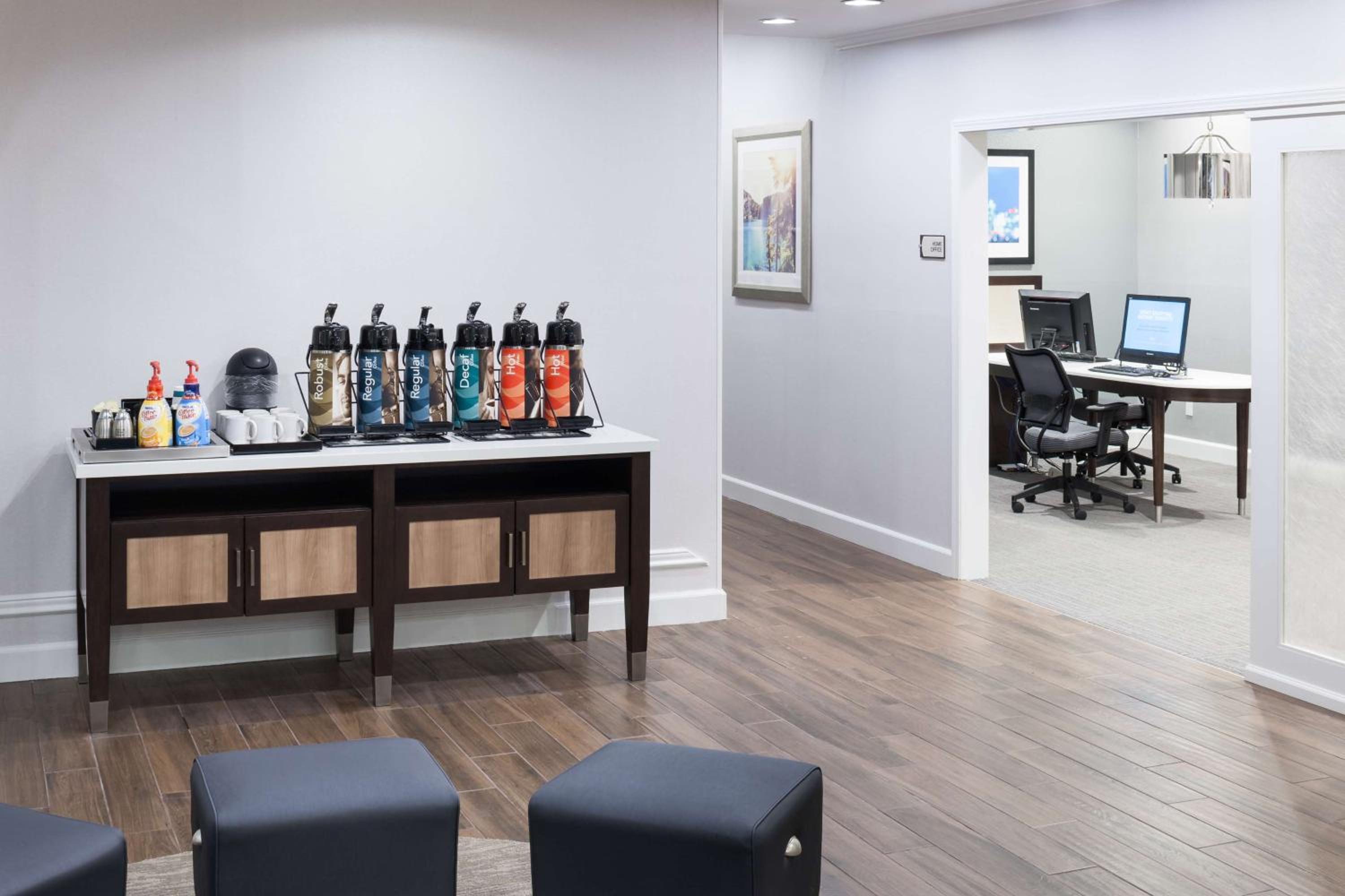Start your day with a free hot breakfast buffet and take advantage of our 24-hour convenience store for snacks. Stay active in our modern fitness center and unwind at the complimentary weekday evening reception.