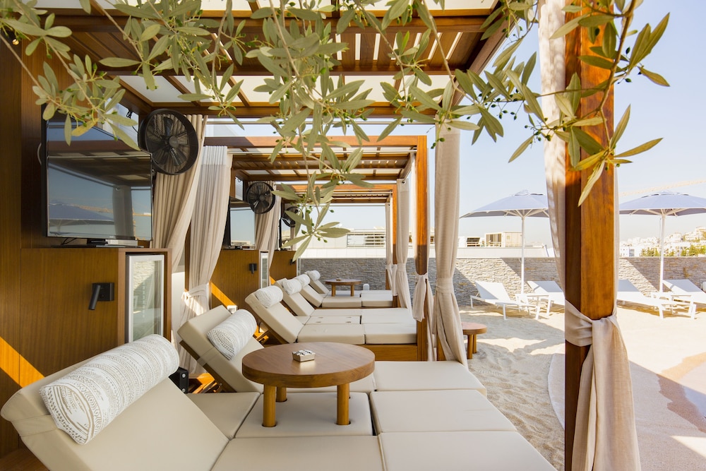 The rooftop wading pool was a real highlight. It’s not big enough for swimming, but perfect for a quick dip between lunch and drinks. Tables were free to use, while loungers (€20 minimum spend for two with an umbrella) and cabanas (€40, which easily covered lunch and a couple of drinks) were well worth it. The rooms were spacious and comfortable, breakfast had plenty of variety, and the location was excellent — just a 10-minute walk to the metro, with a direct line to the airport and easy access to the Acropolis and Ermou Street, only three stops (about 10 minutes) away.